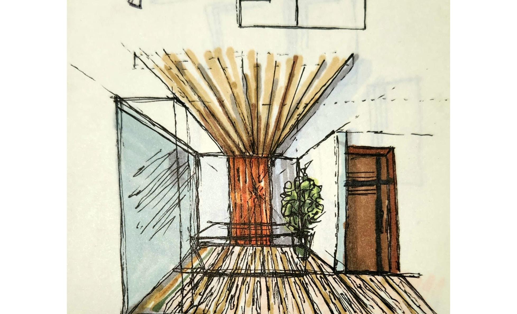 El diseño se plantea con el objetivo de guiar al usuario o visitante que accede al edificio, invitándolo a permanecer o para anunciarse.