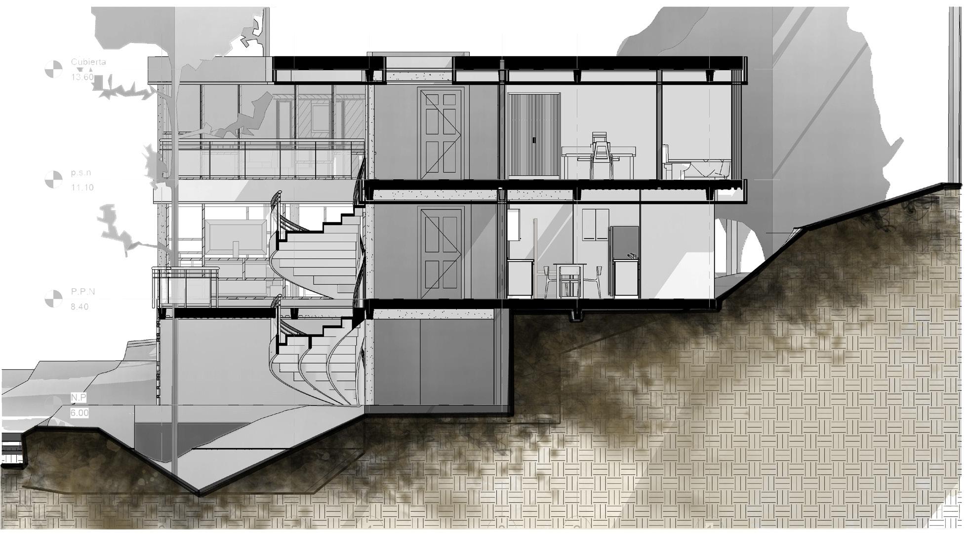 Localizada en el parque Nacional en la ciudad de Bogotá, se planteó un elemento arquitectónico capaz entender las condiciones naturales y usarlas en beneficio de un objeto tectónico, que interpreta y se configura a partir de dichas determinantes naturales, obteniendo así, la comunión entre lo natural y la vivienda implantada