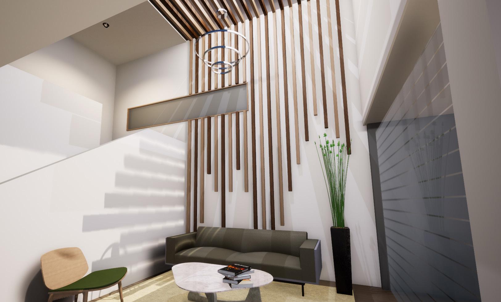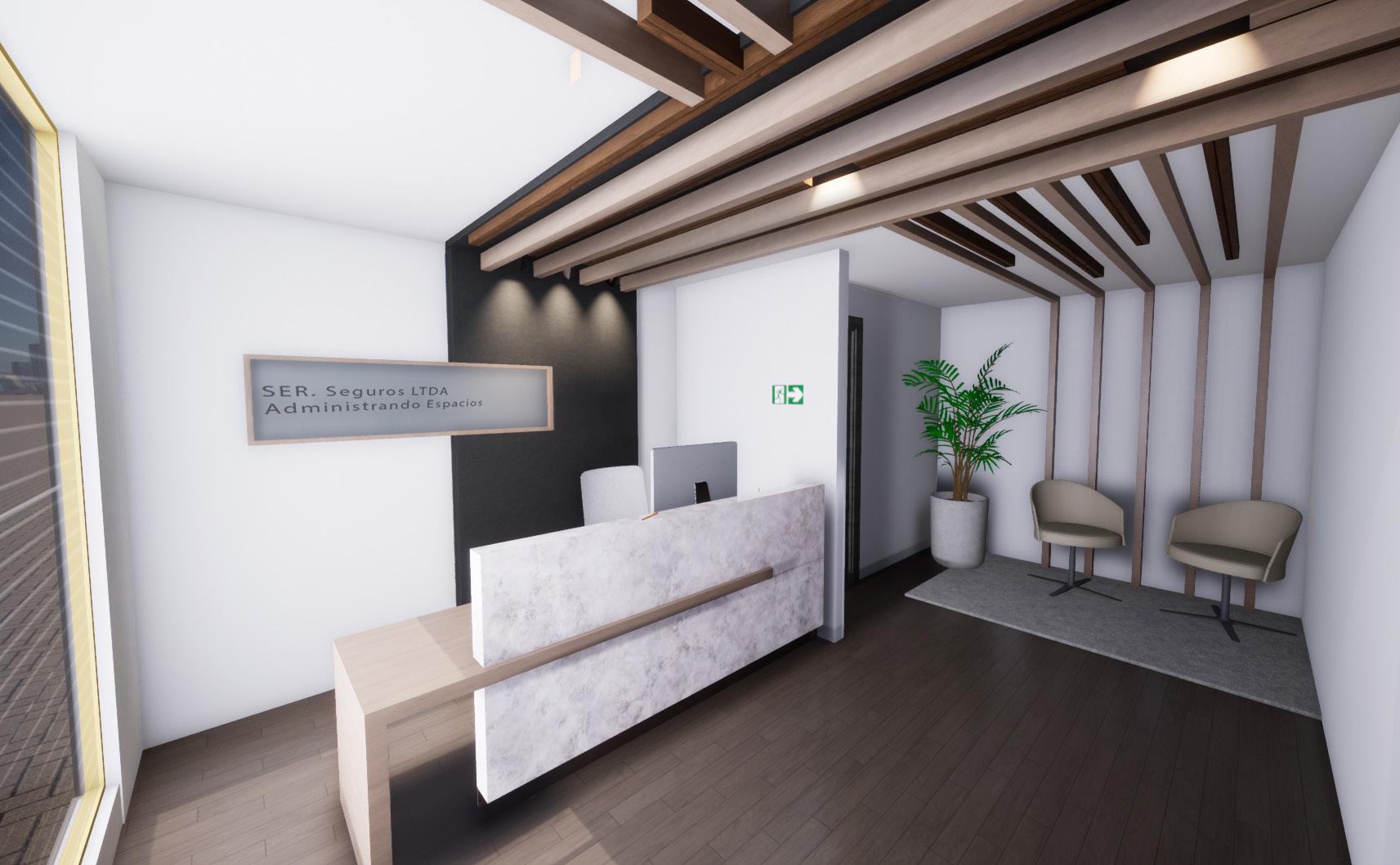 Diseño y creacion de Renders para dos espacios de recepcion en oficinas