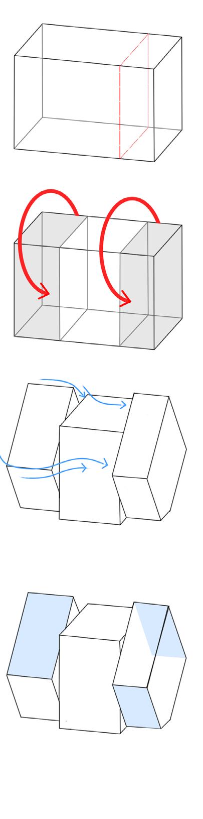 Rotación de los volúmenes periféricos, para generar aperturas en función del confort térmico.