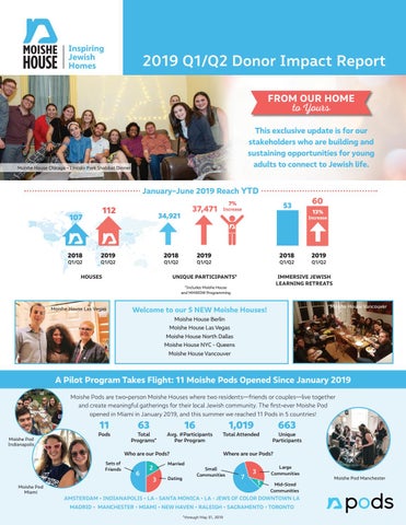 A Pilot Program Takes Flight: 11 Moishe Pods Opened Since January 2019 Moishe Pods are two-person Moishe Houses where two residents—friends or couples—live together and create meaningful gatherings for their local Jewish community. The first-ever Moishe Pod opened in Miami in January 2019, and this summer we reached 11 Pods in 5 countries!