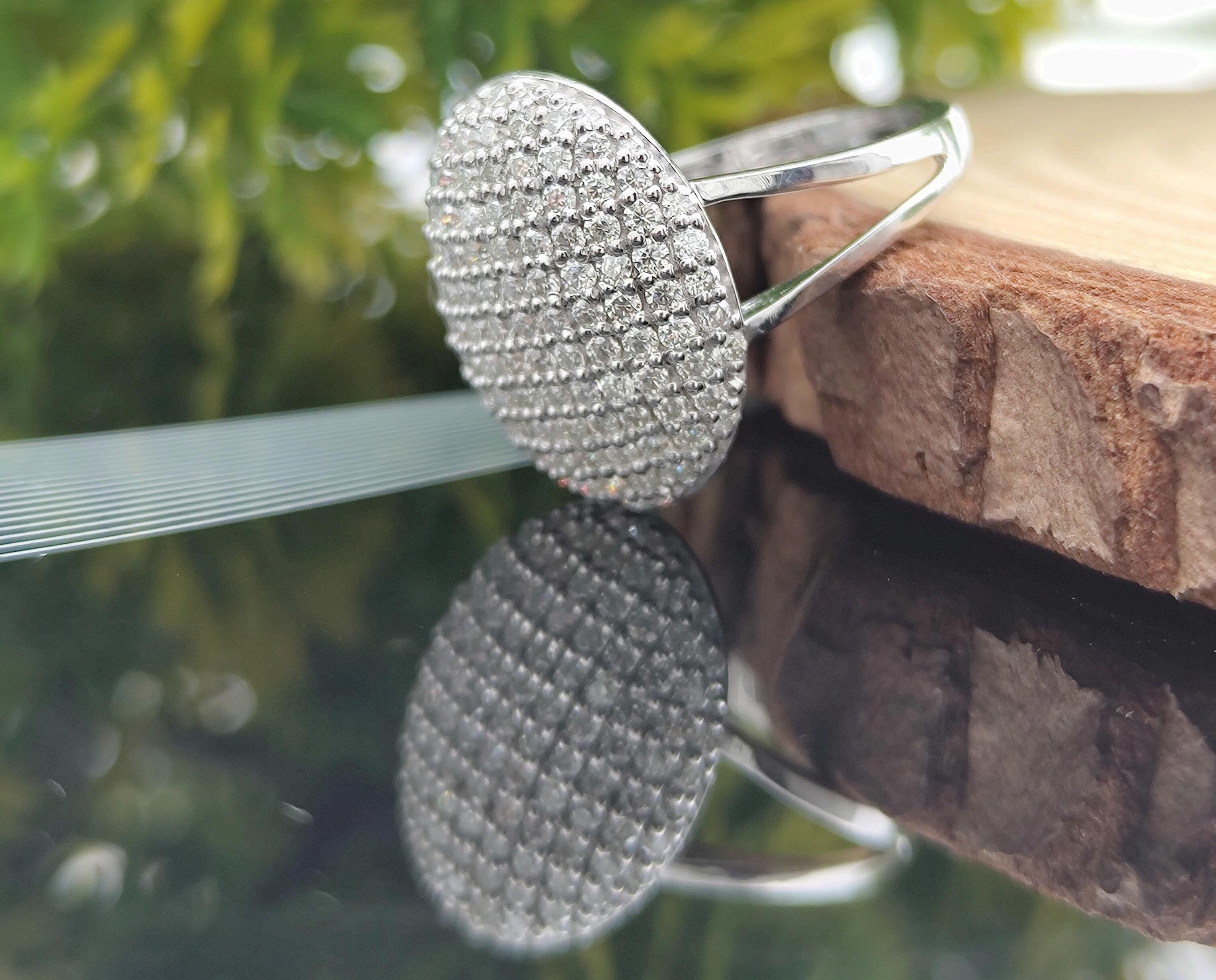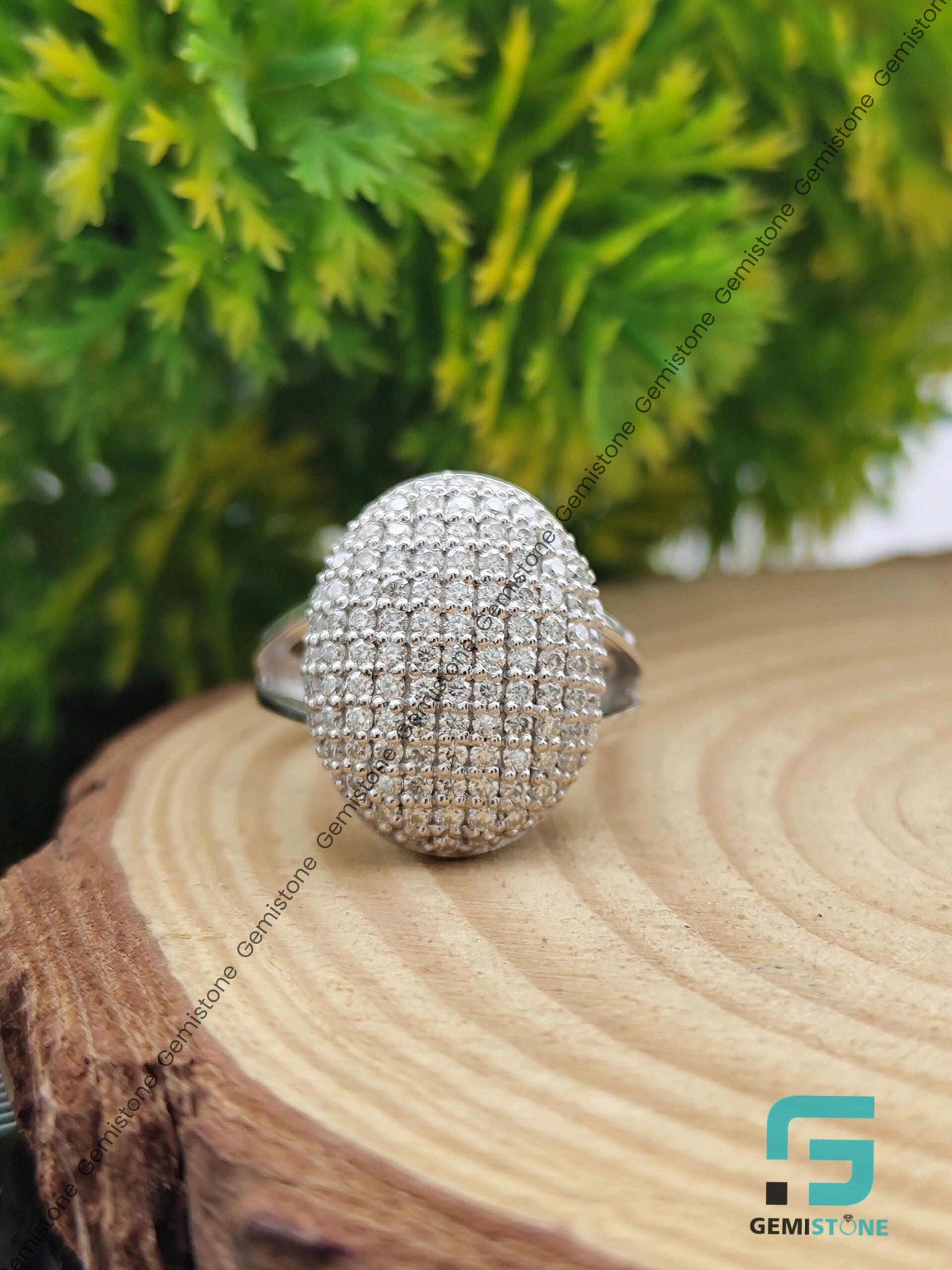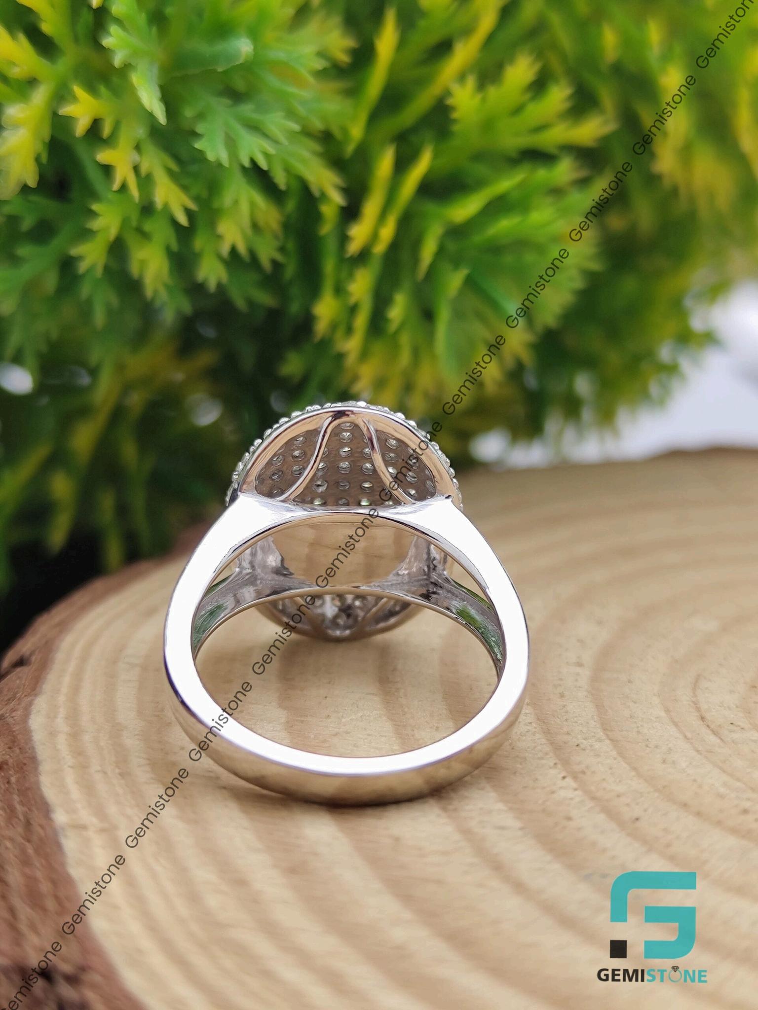 The Twilight Bella Ring is a signature piece from Gemistone's premium moissanite collection. It features a dazzling oval or moval shape center stone set gracefully with cluster round-cut moissanite diamonds through a secure prong setting.