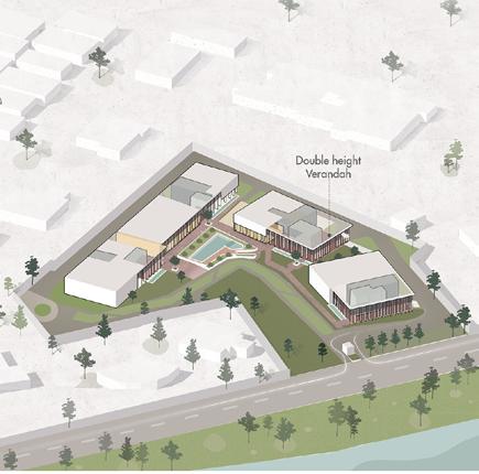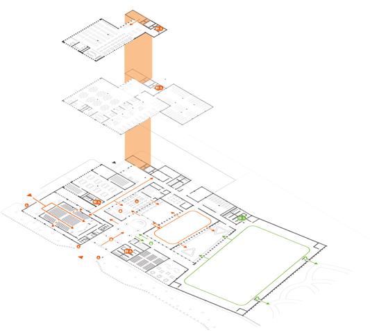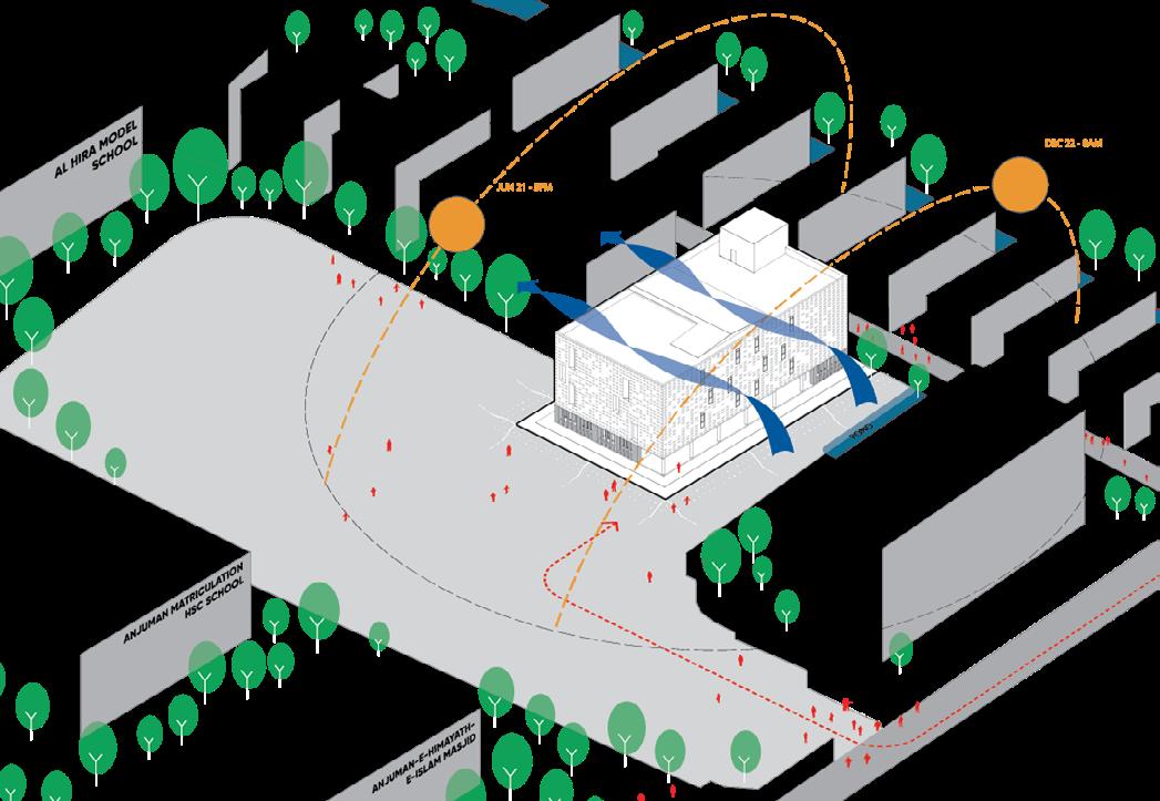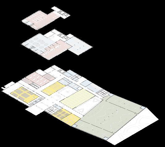 The breakout spaces within the school are characterized by varying volumes, providing a stimulating and enriching experience for the students. On the practical front, all utilities and services are smartly positioned on the western side, ensuring efficient maintenance and functionality. Meanwhile, the labs are strategically placed on the eastern side to facilitate a seamless learning environment.