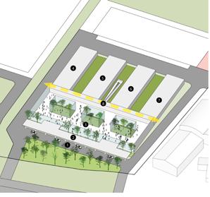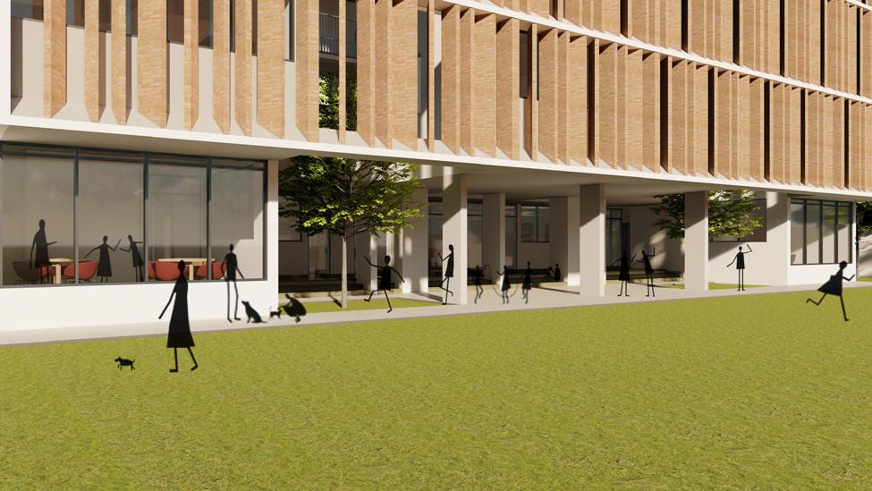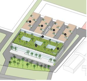 A defining feature of the campus is the central landscape axis. This meticulously planned green space runs through the academic block, offering an inviting environment for students, faculty, and visitors. It encourages interaction, relaxation, and the overall well-being of the campus’s inhabitants.