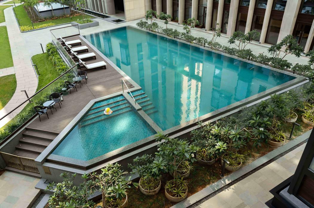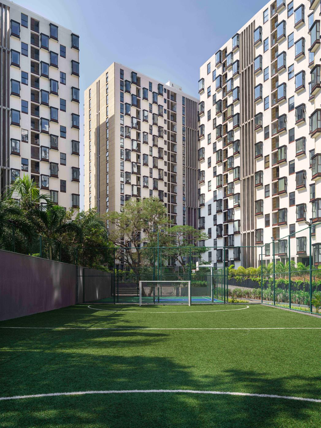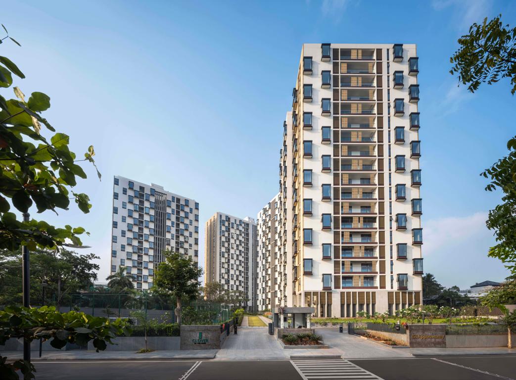 ‘Clover by the river’ is a multistoried high-end apartment building set along the Adyar river in Kotturpuram, Chennai. The location of the 3.3-acre site is quite unique – it faces the river with a forested park right in front of it. As one goes higher the site offers great views of the river to the North, the Bay of Bengal towards the East and the city views towards the South and West.