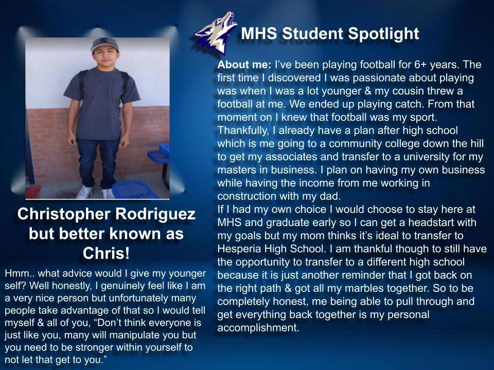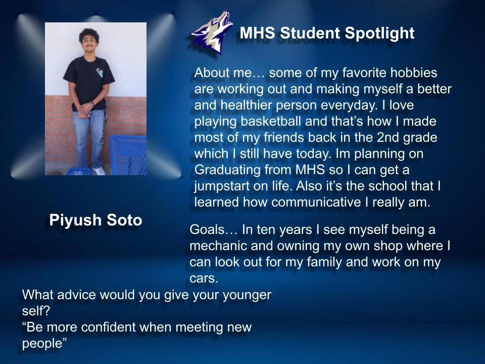 In each month’s issue, a set of amazing MHS students will be showcased. Here are the first batch of students. We love our Coyotes!