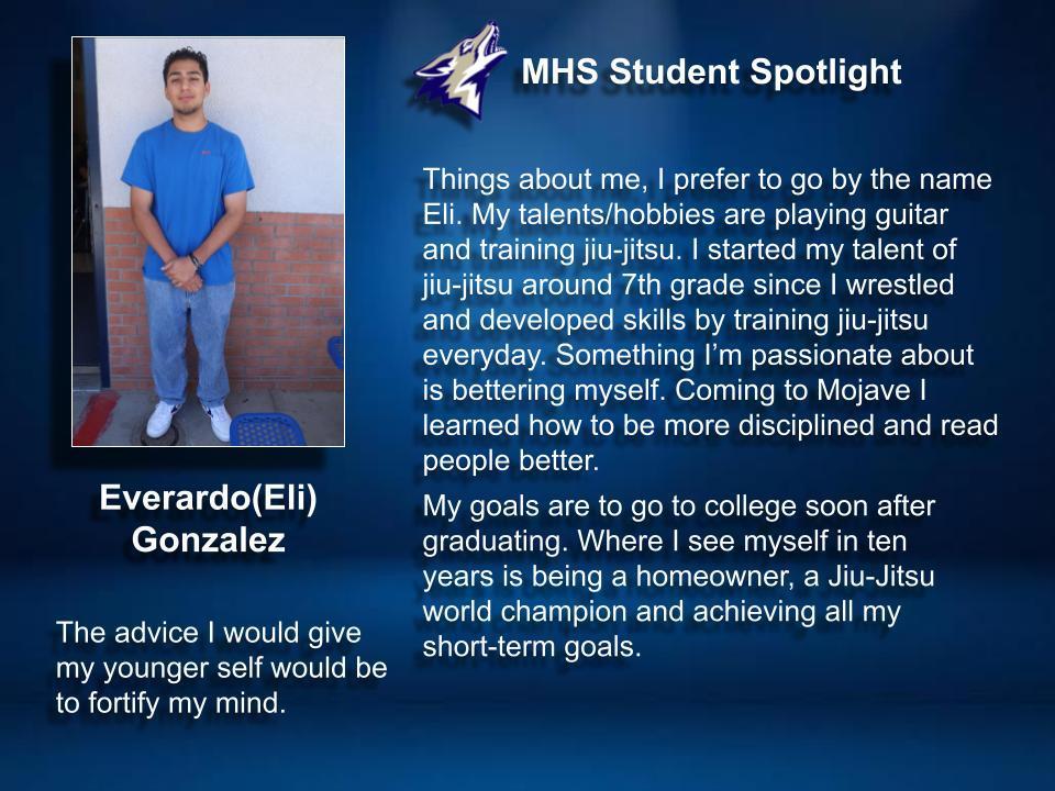 “What’s something you look forward to this year? “I’m looking forward to bringing out the talents of each of our students and being able to step aside and allow them to shine and build up that leadership because we have some really talented students here at Mojave”