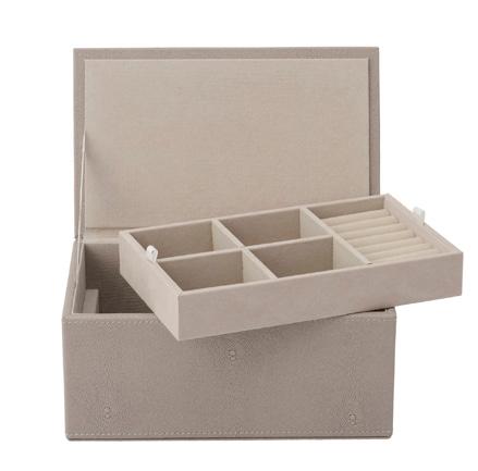 STING produkterne er bygget op omkring en base i sporbar MDF og beklædt med PU tekstil. Stoffet har et print inspireret af rokken. PU eller polyuretanstof er et syntetisk materiale, der skabes ved at belægge et lag polyuretan på et basisstof. Produktionen af tekstilet er omfattet af REACH-forordningen, hvis formål er at minimere brugen af kemikalier og at tage hensyn til menneskers velfærd og miljøet. Tekstilet har en blød og vandafvisende overflade, som let kan rengøres med en fugtig klud.