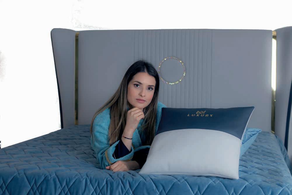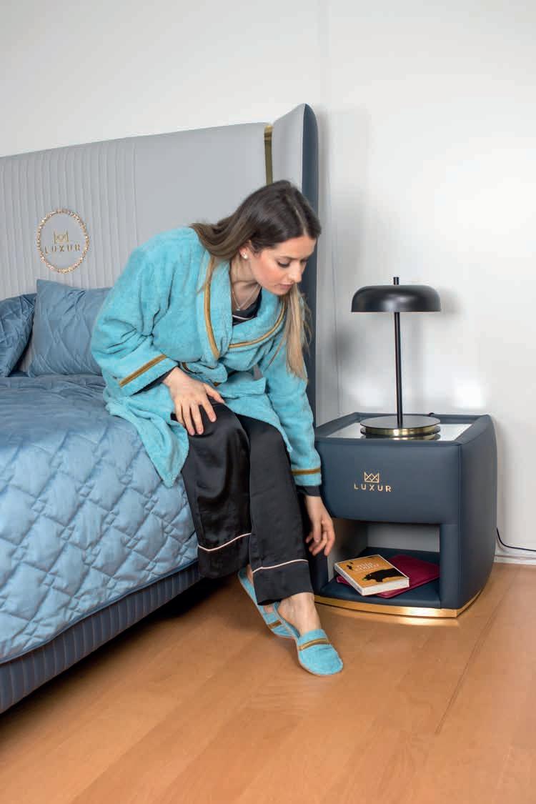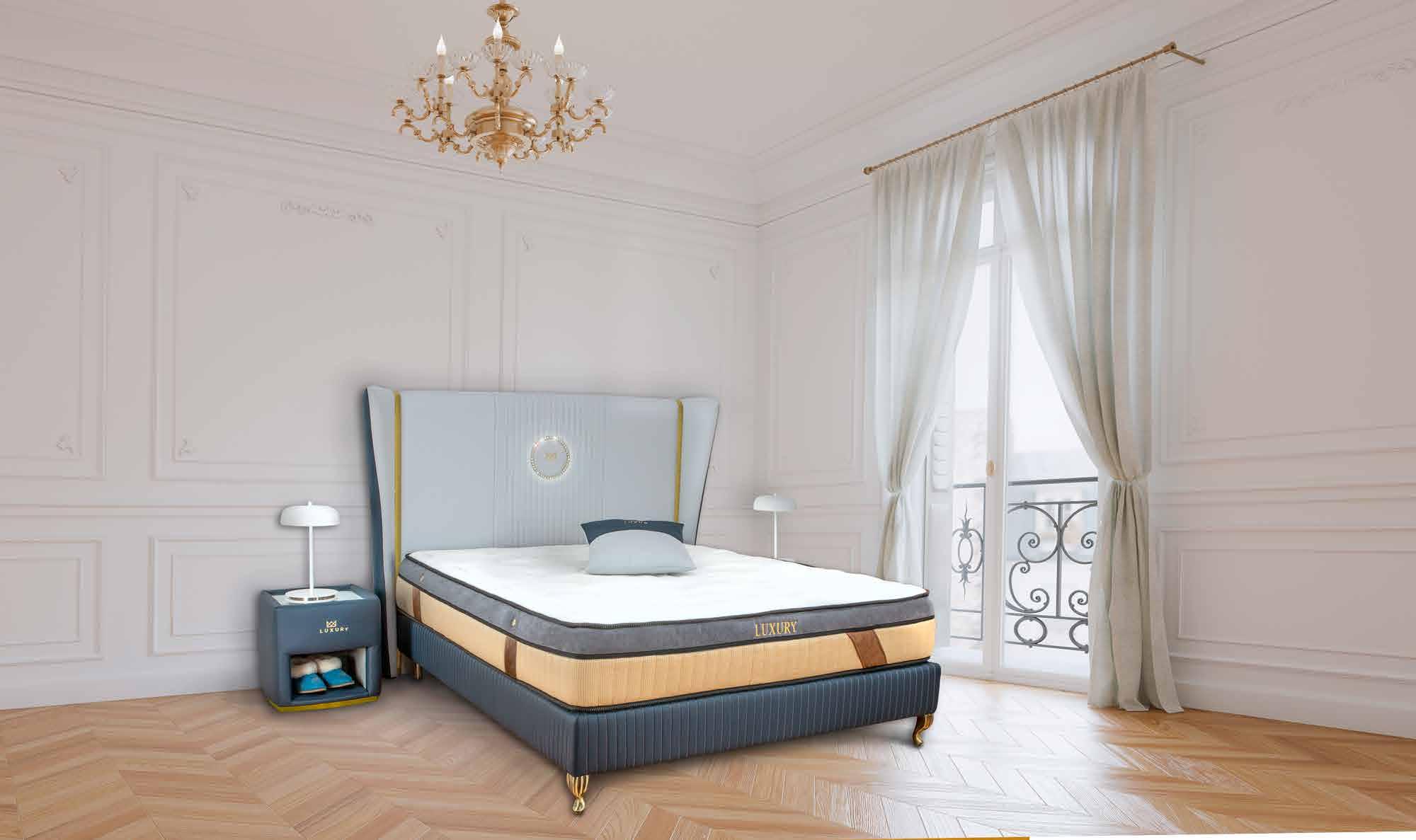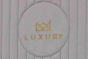 A cabeceira Luxury apresenta o logotipo bordado, podendo também ser adornada com pedras esotéricas ou cristal boémio.