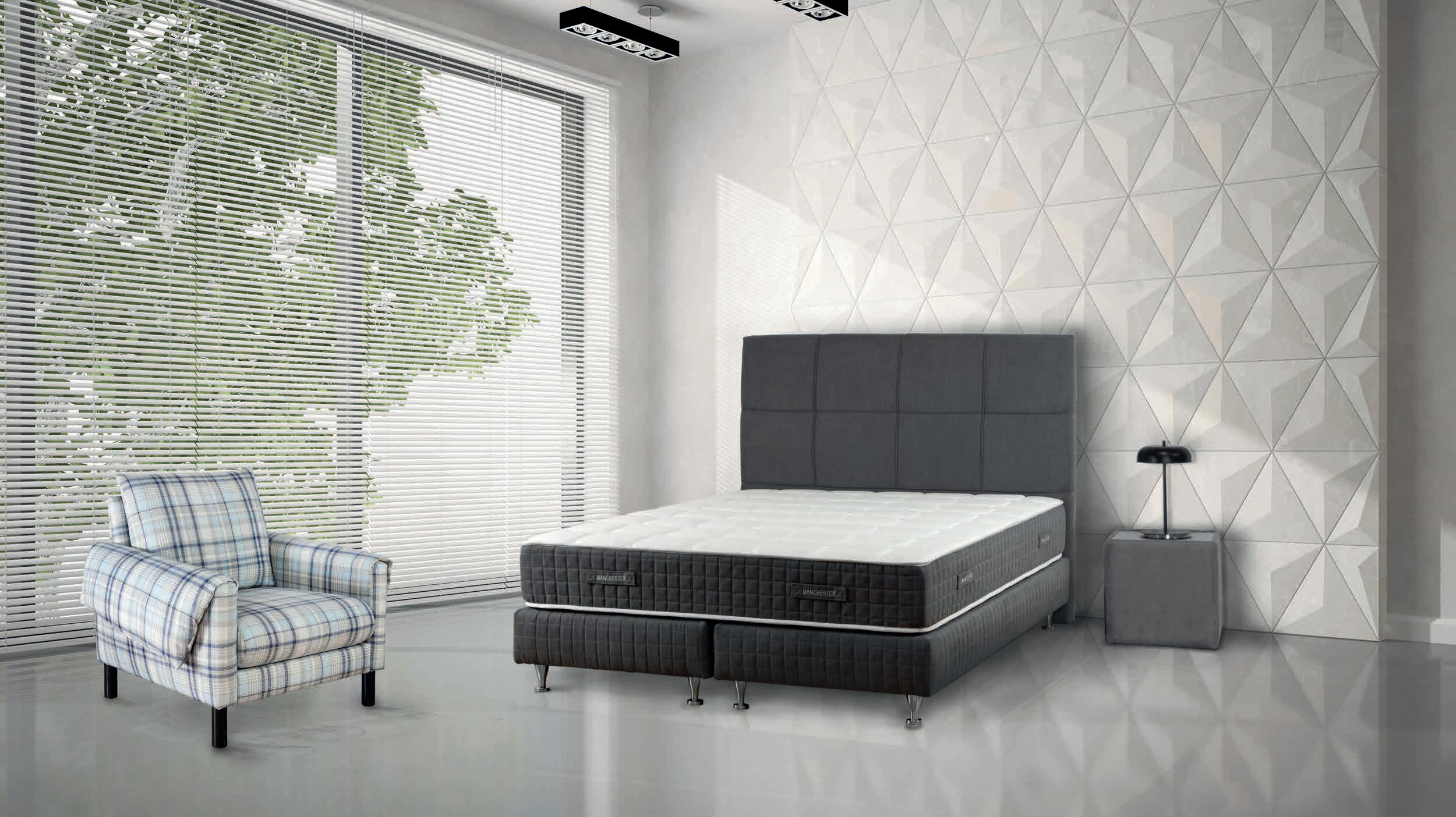 Mattress- Pocket springs (252 un/m2) com 8 embroidered built-in turning handles Chrome plastic feet with 12cm height (consult others available)