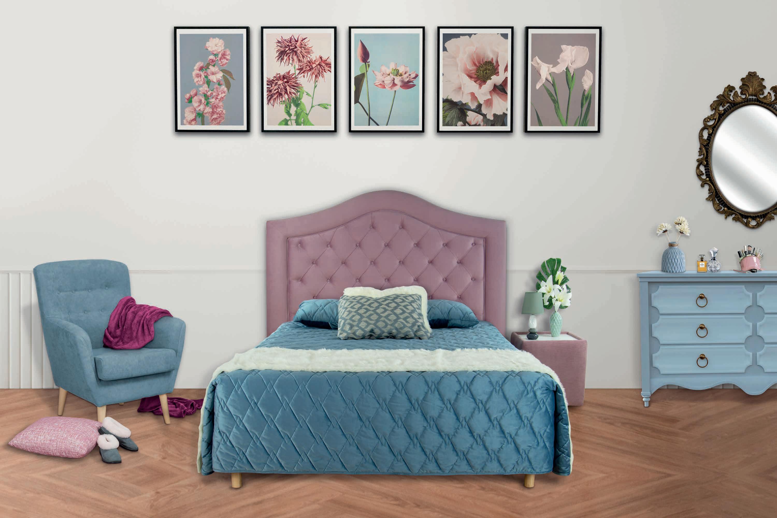 Cabeceira - estrutura em madeira de pinho + MDF com sistema de encaixe rápido ao sommier (incluído)