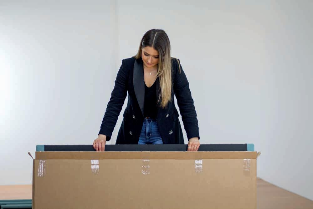 Gomos H SPACE 190 / 200 34 63 22 18 90 / 140 / 150 / 160 / 180 Video PT ENFREstrutura de metal Tampa elevatória com réguas de madeira (fundo em cor cerejeira e tampo em TNT preto) Gaveta frontal em melamina de cor banca com rodas ao chão Metal structure Lift cover with wooden bed slats (cherry colour bed bottom and 3D black fabric top) White melamine front drawer with wheels on the floor Structure métallique Couvercle relevable avec lattes de bois (fond en couleur cerise et dessus en non tissu couleur noir) Tiroir avant en mélaminé couleur blanc avec roulettes au sol