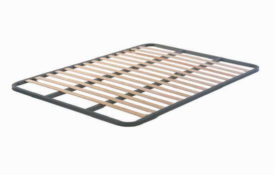 Bed base- MDF/chipboard structure with metal frame and wooden bed slats (included)