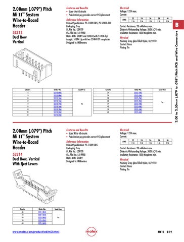 B 2.00 to 2.50mm (.079 to .098") Pitch PCB and Wire Connectors