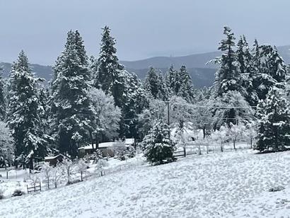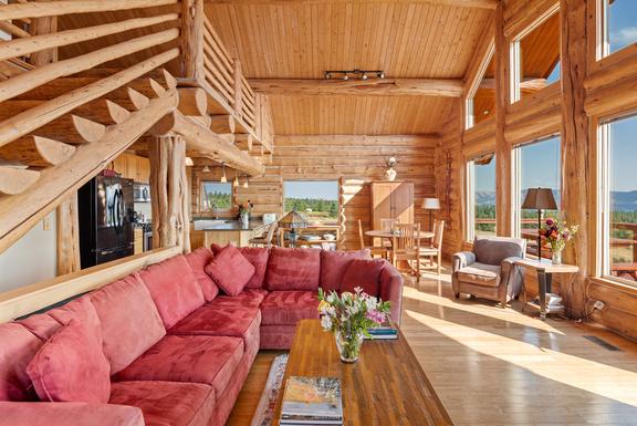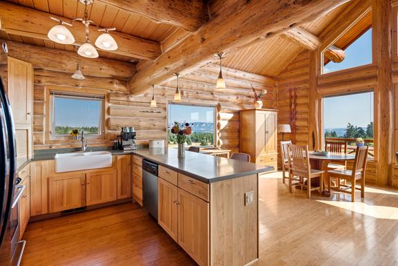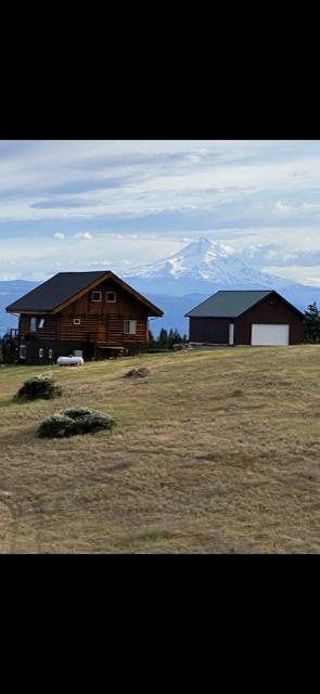Serene log home nestled in on 9.95 acres with detached oversized garage. Thoughtfully placed with stunning views of Mt Hood this well maintained property features high grade materials and quality finishes through out making it easy to rest and relax. The thoughtful layout provides places for privacy in addition to having an open kitchen and living space Beautifully updated ground floor features, 2nd living room, wood stove, French doors, primary and 3nd bedroom, laundry and outside access