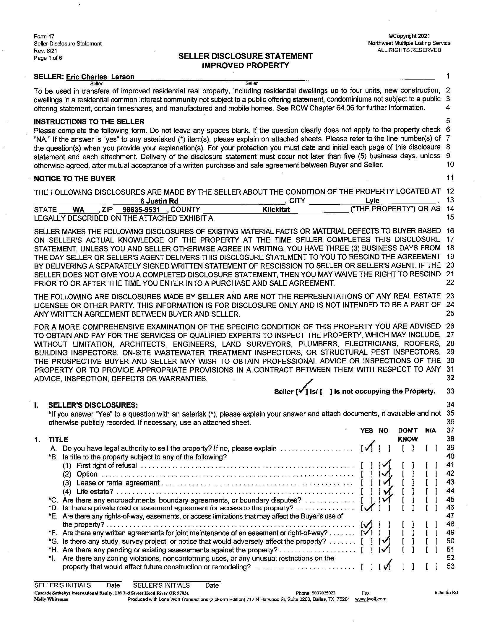 17.An easement including the terms and provisions thereof: Granted To: Public Utility District No. 1 for Klickitat County Recorded: October 25, 2002 Instrument No.: 1033089 View Document