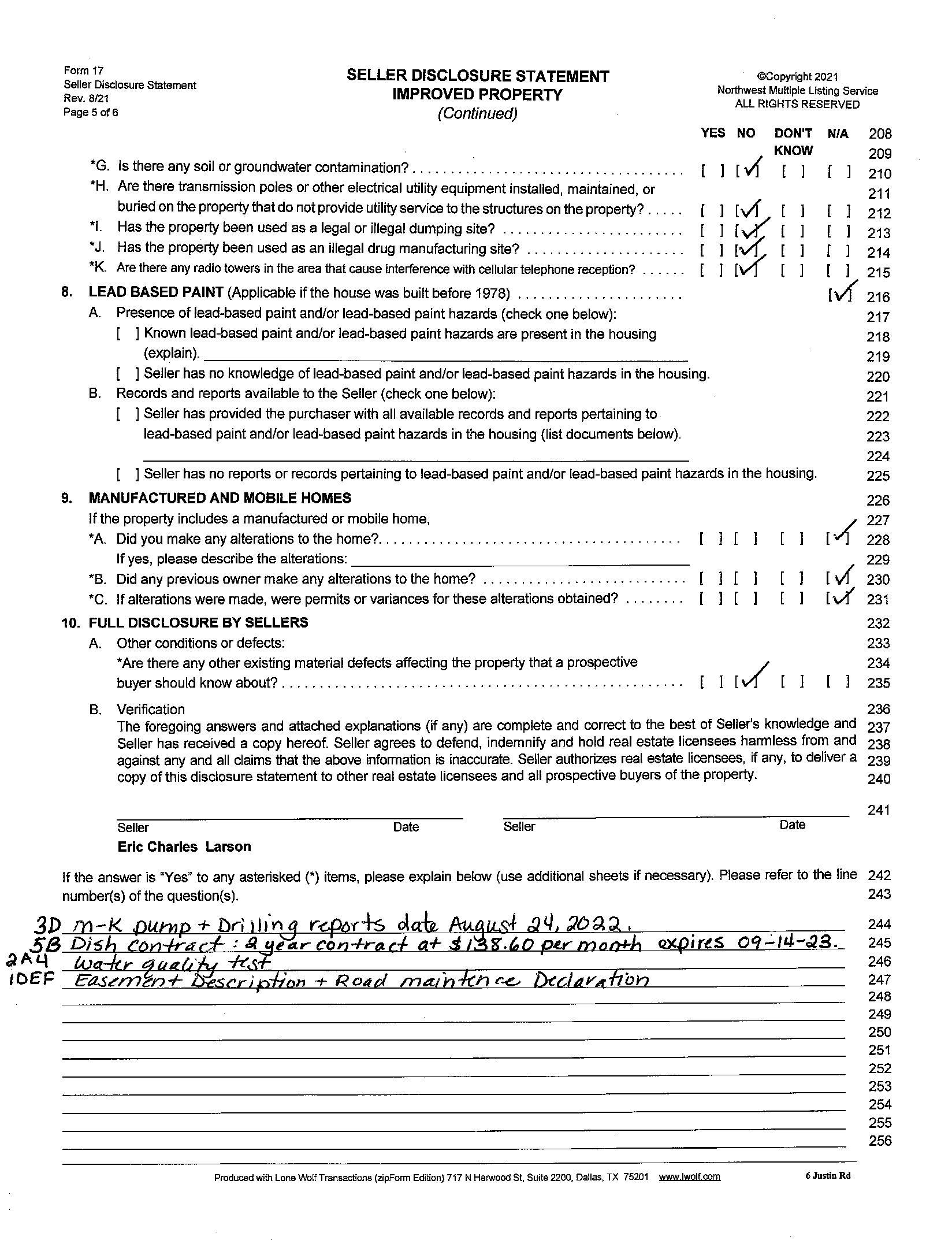 9.Any conveyance or encumbrance executed by the herein named party must also be executed by the spouse or domestic partner of said party, if married or in a domestic partnership. Named party: Eric Charles Larson