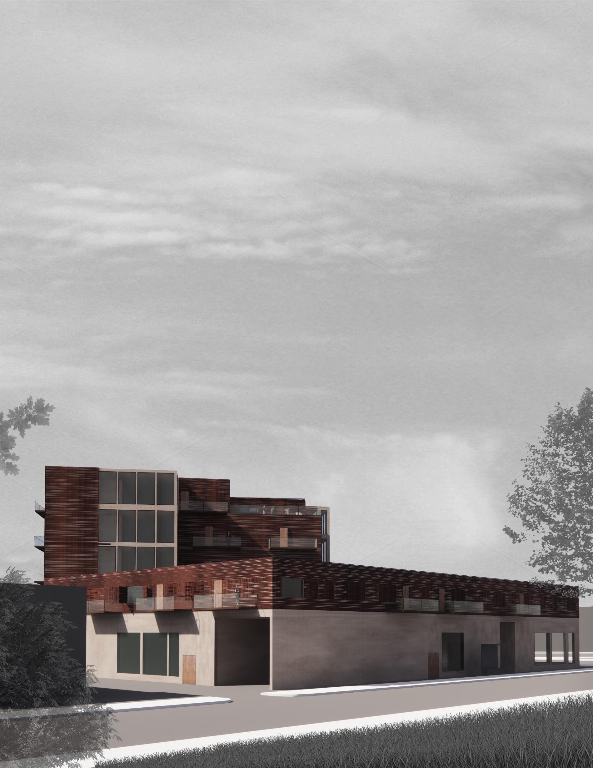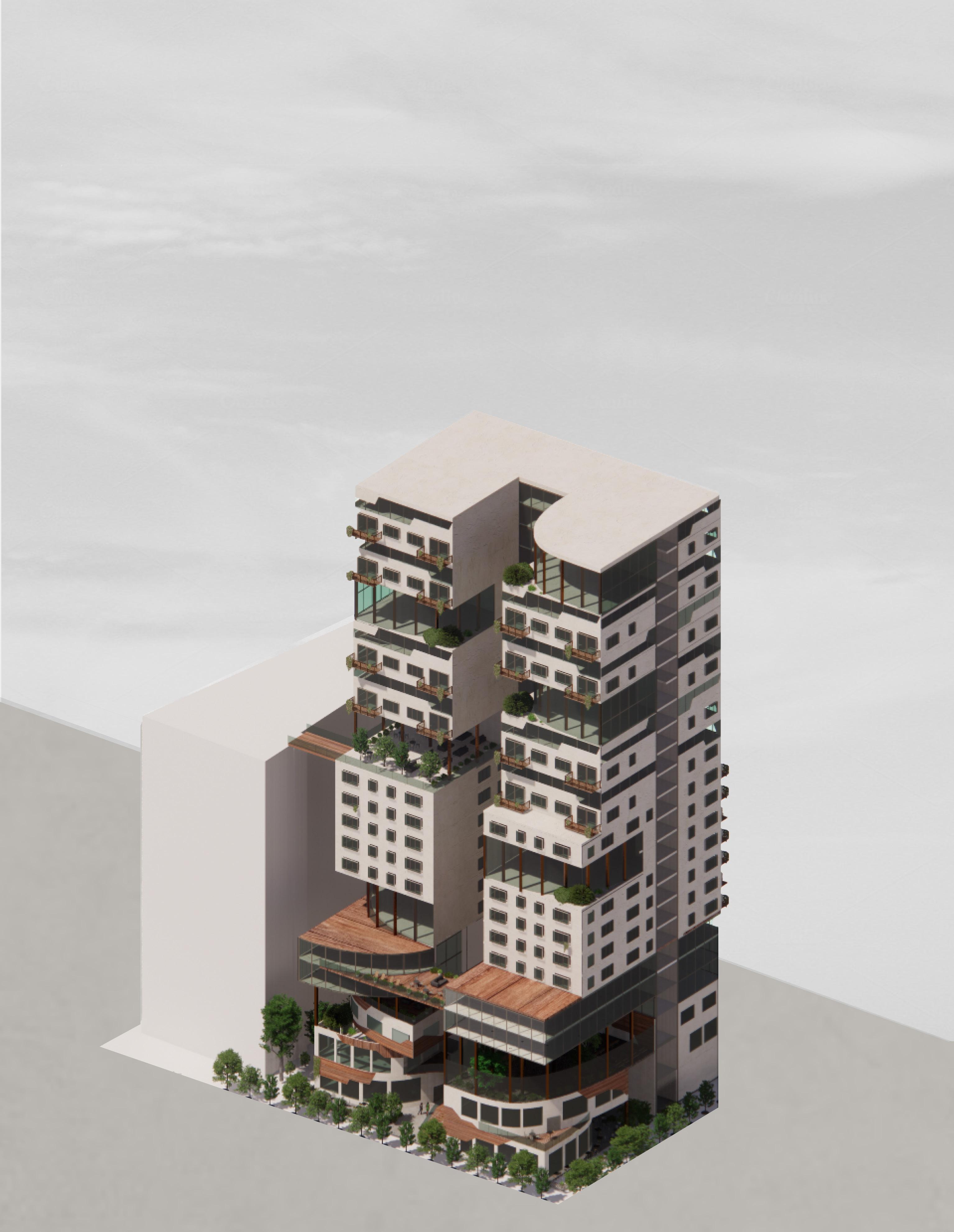 This design is for a live work apartment proposal. With three floors of retail, three floors of offces,andtherestrestbeingapartmenttliveworkunits.