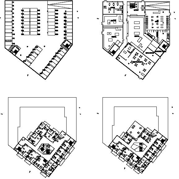 This comes out to be a formal, non hierarchical building, as seen from the outside patterning reflecting onto the inside. However, the subtle shifts and spaces created in the inbetween space make the mostly formal building a warm, inviting environment.