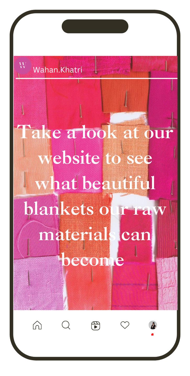 Showcasing the materials used to create the blankets - links to the artisan handmade craft but also is a way of educating consumers and letting them get to know the brandmore.