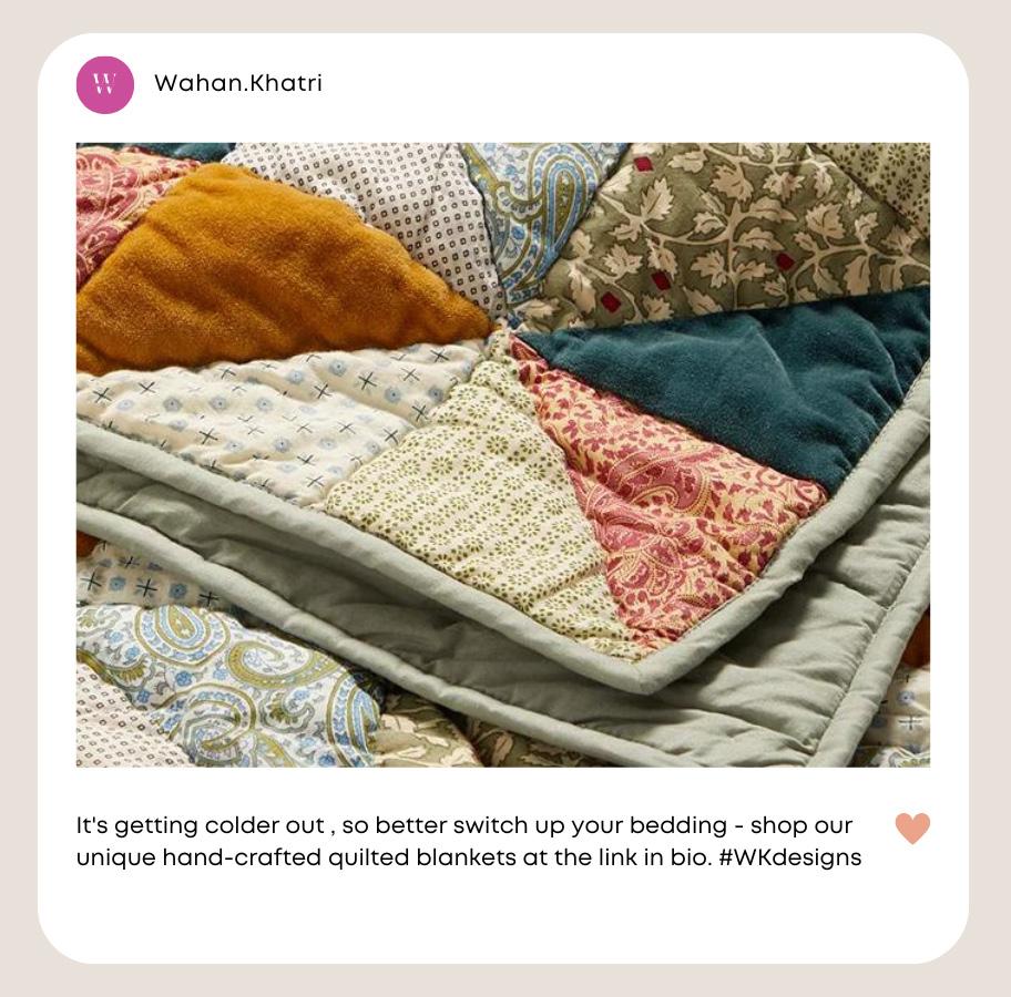 The initial idea for the artisan is to create quilted blankets using the Bandhandi fabrics. Either using one fabric type or to create patchwork pieces.These would be ‘one of a kind’ so that each blanket is unique. This may be suitable to fit an extension of the Weird Girl aesthetic, curated of clashing colors, patterns and textures that effortlessly work together (Edited.com, 2023). The ‘one off’ blankets may also make the brand appear exclusive as consumers would feel more individualstic owning something that they know others don’t.Khatris brand would be female focused with a friendly facing personality and voice to appear approachable to consumers, similar to brands like Glossier and Lush who are known to be welcoming to all.