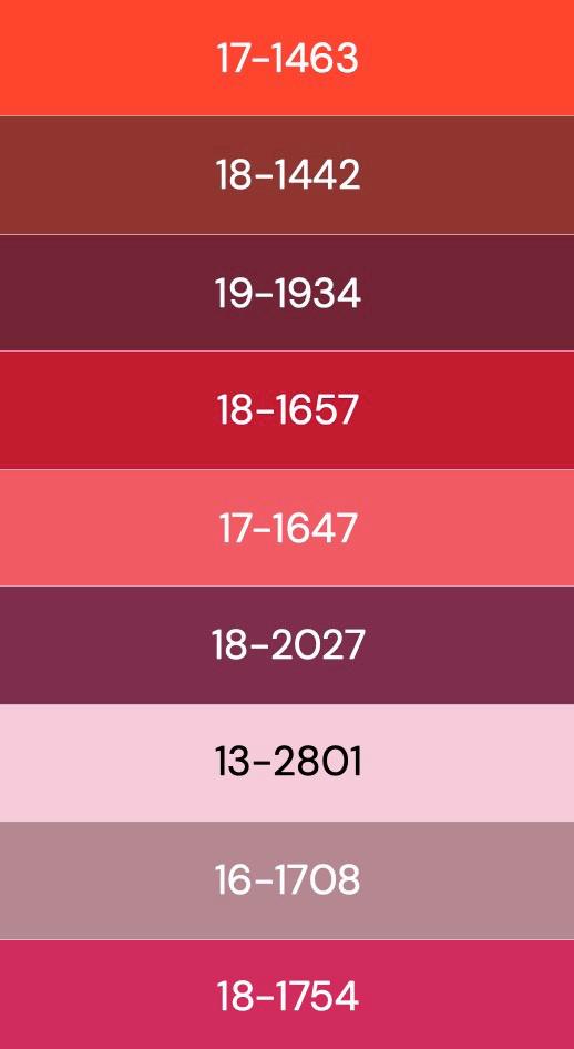 In the Global Colour Forecast for Spring/Summer 2025, it is predicted that, for pinks, a range of berry tones will become popularised (Samba, 2023). The the Pantone shades above will also be utilised as not only do they blend in well with Viva Magenta, but they will become highly popularised within the industry and again audiences will recognised the shades, which could ultimately make them more attracted to the brand.