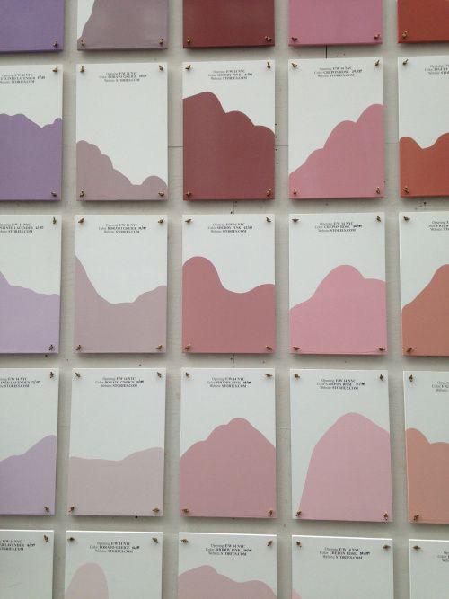Colour palette wall, showcasing the tones used in the productscould have information about how they are made - links well with sustainability and being an environmentally concious brand.