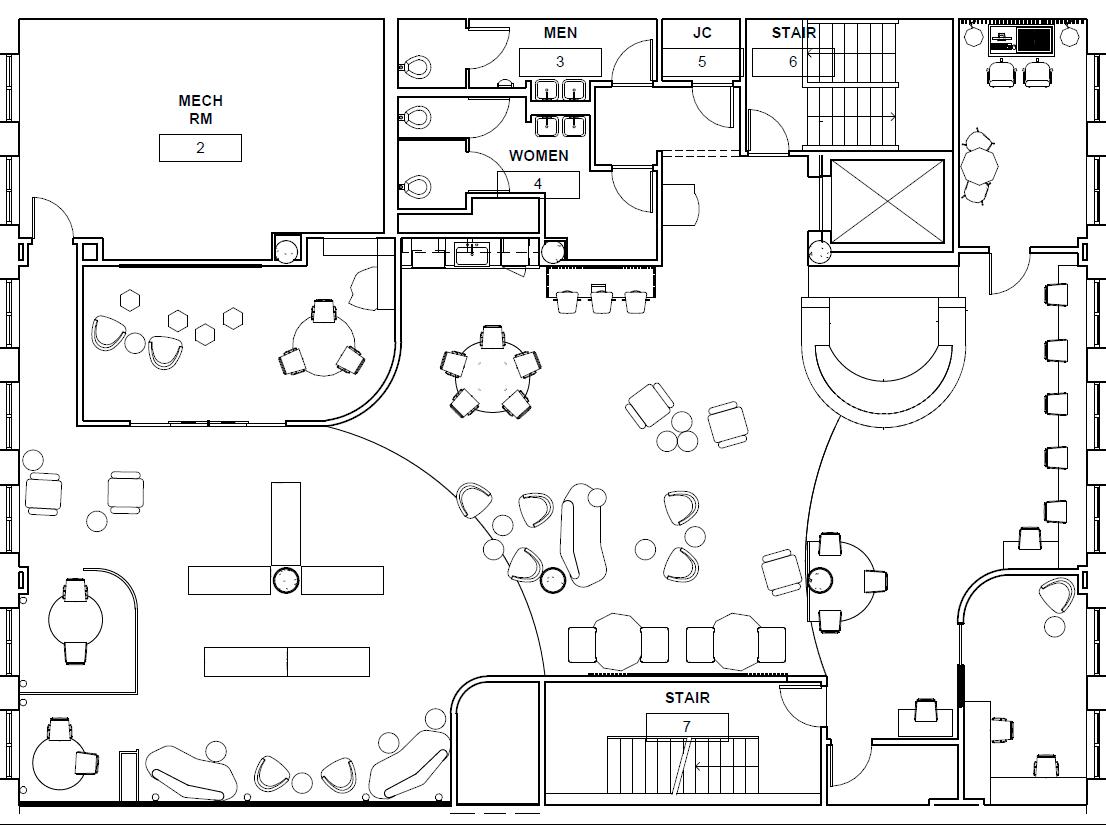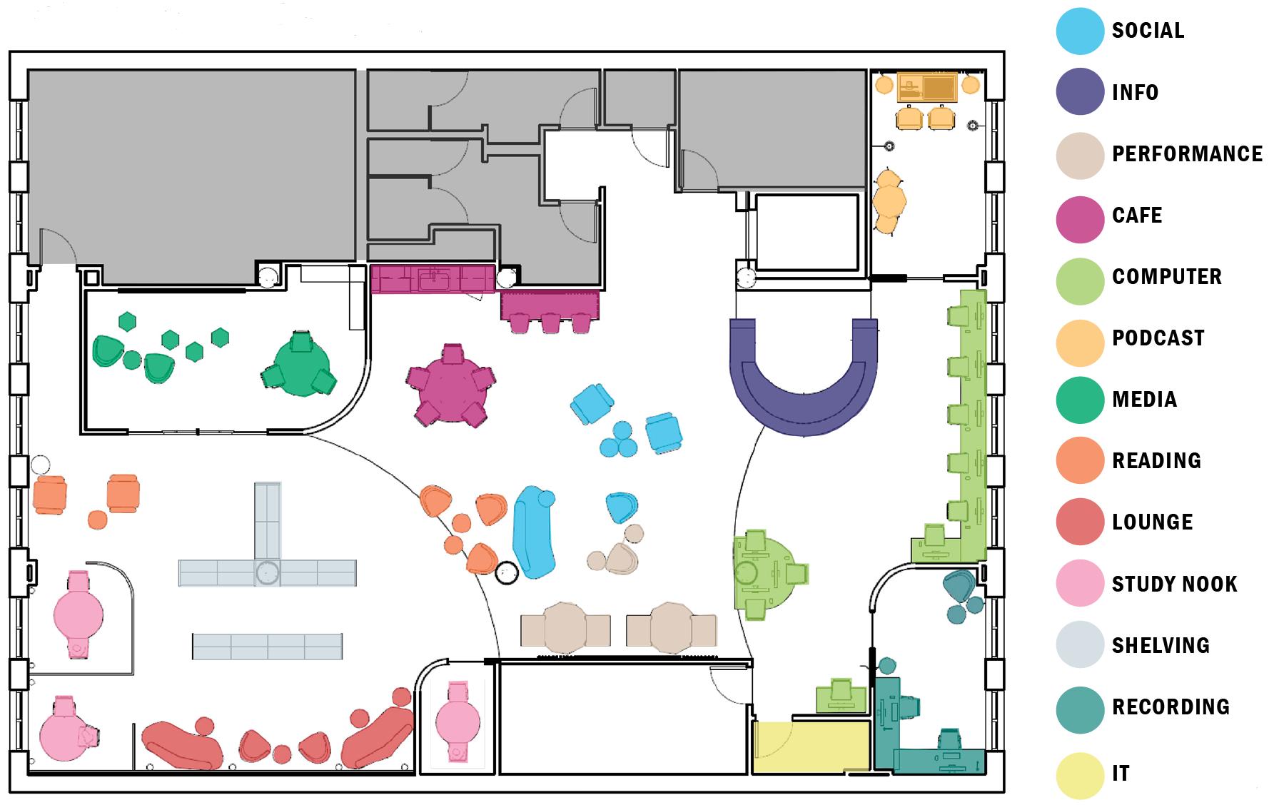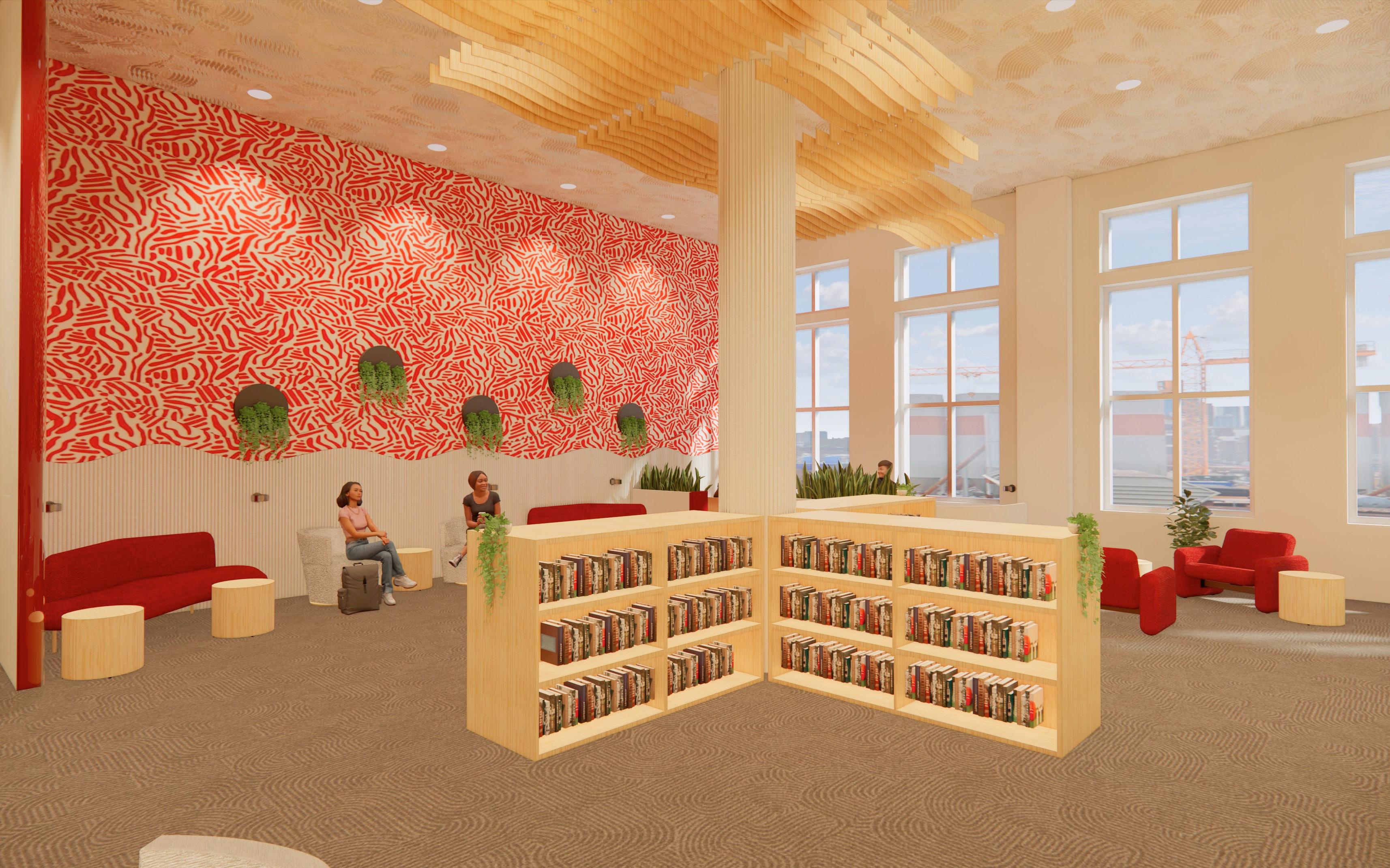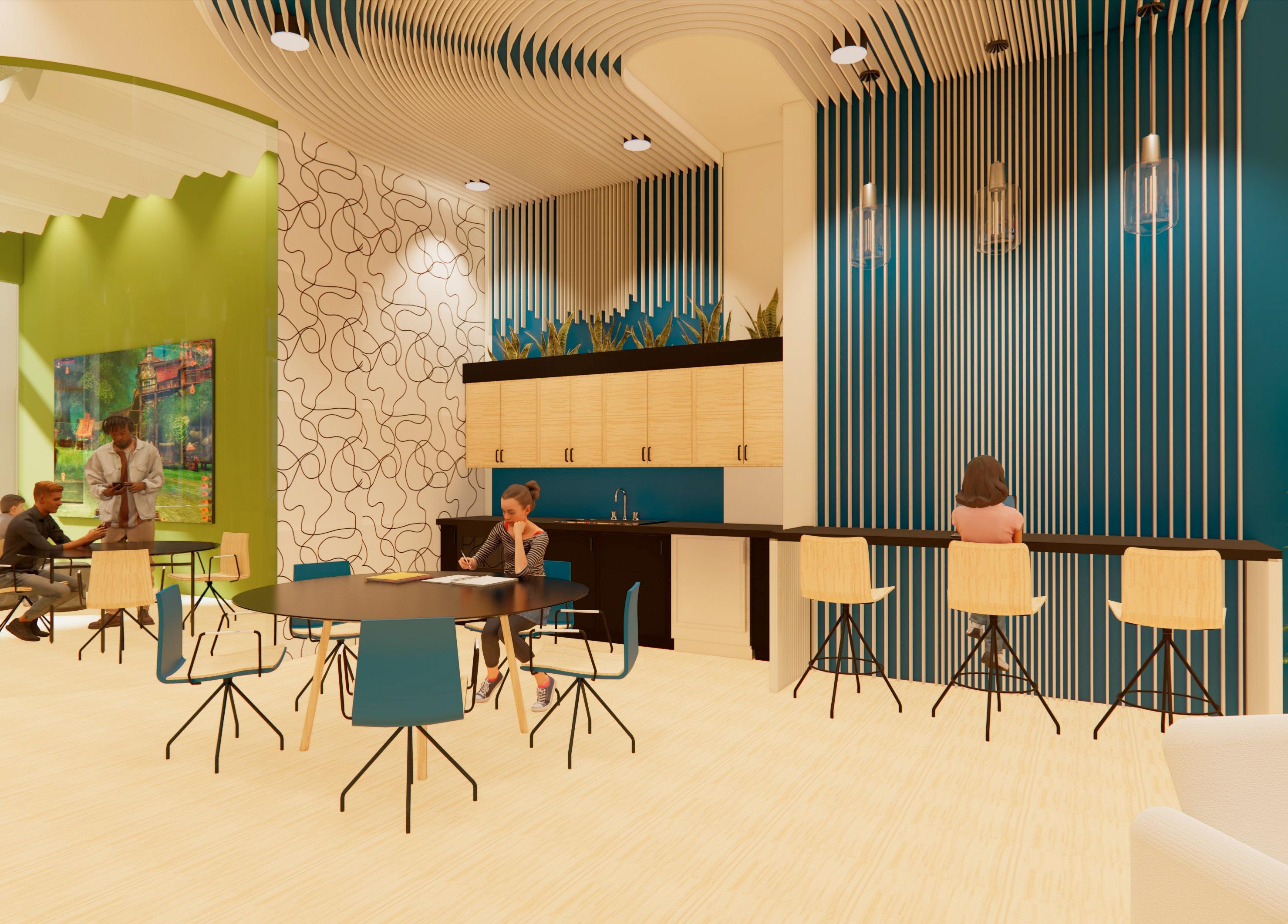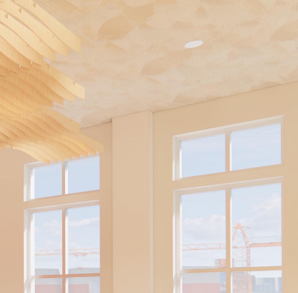 Emulating the energy and movement of sound waves, the space becomes vibrant and immersive. Fluid lines mirror the many unique interests and voices of the community.