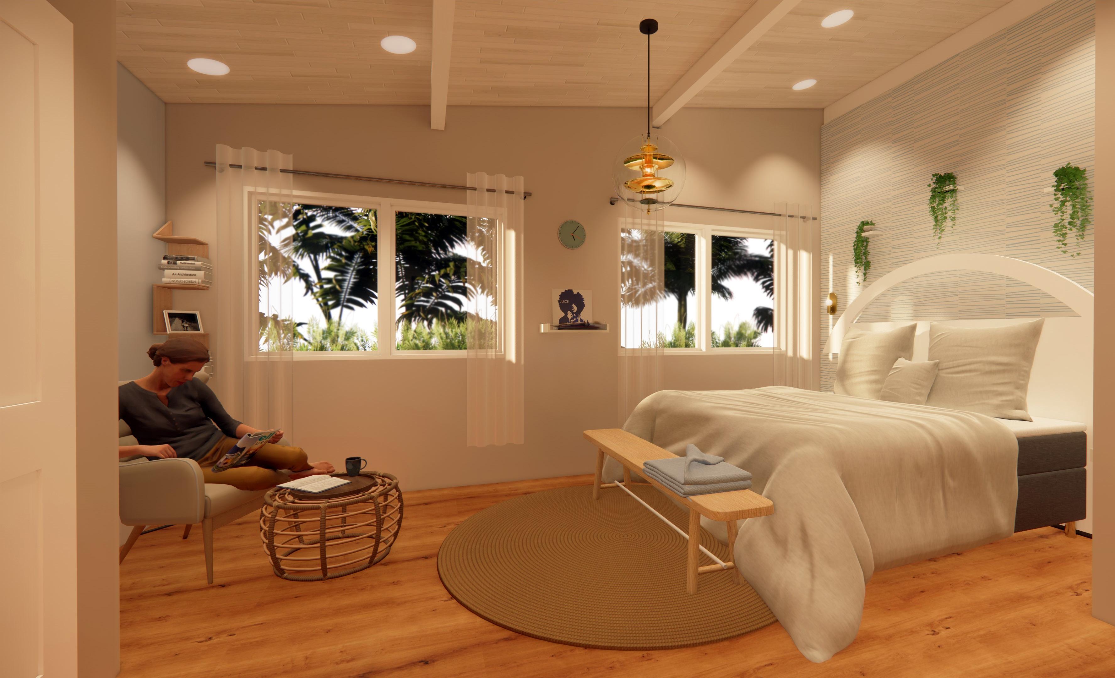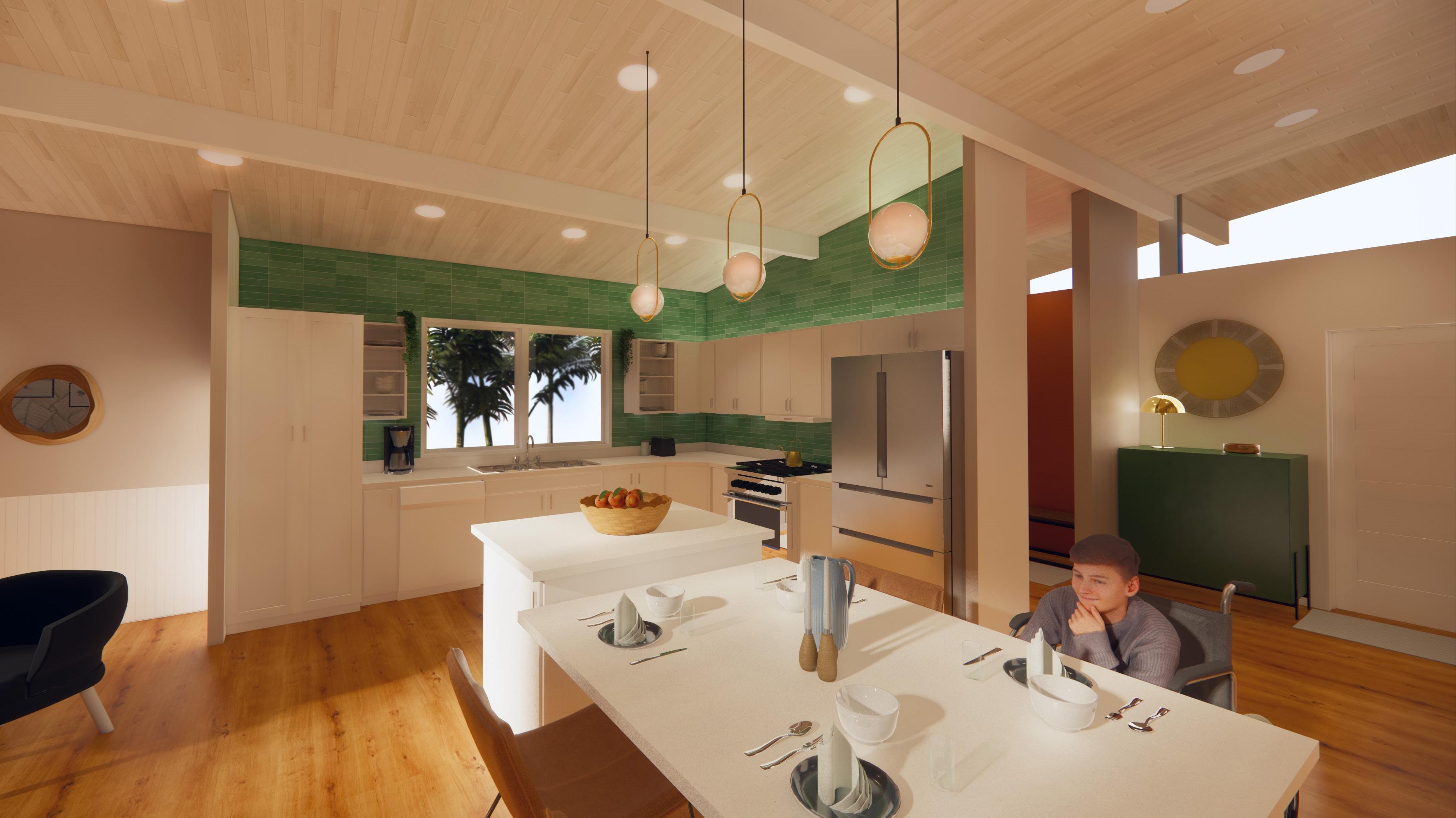Branden and Dana, mid 40s, are the parents of 11-year-old Ethan. Their son has sustained a lumbar spinal cord injury during a car accident leaving him wheelchair bound. The family has requested a mid-century modern style home with enough room for Ethan and his wheelchair.
