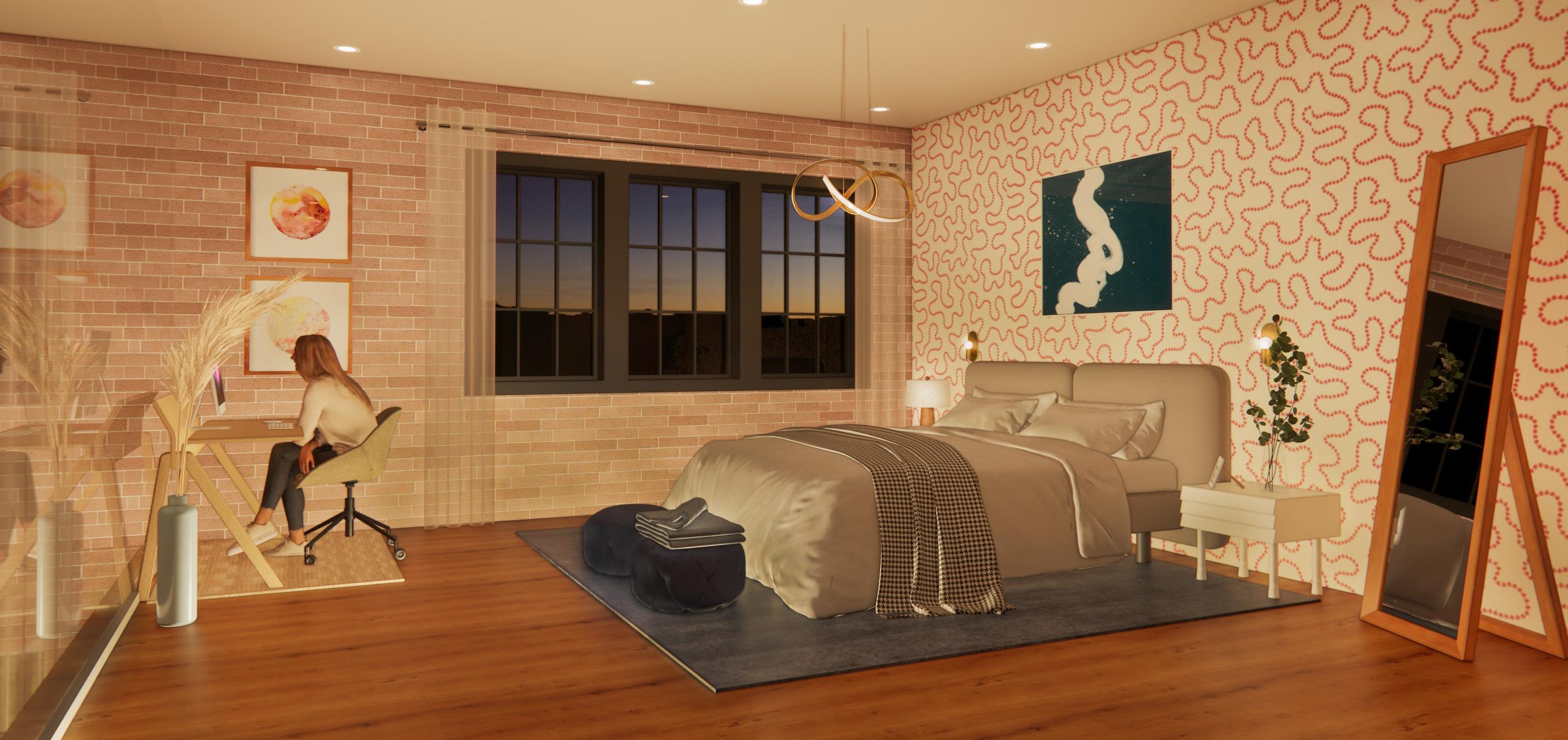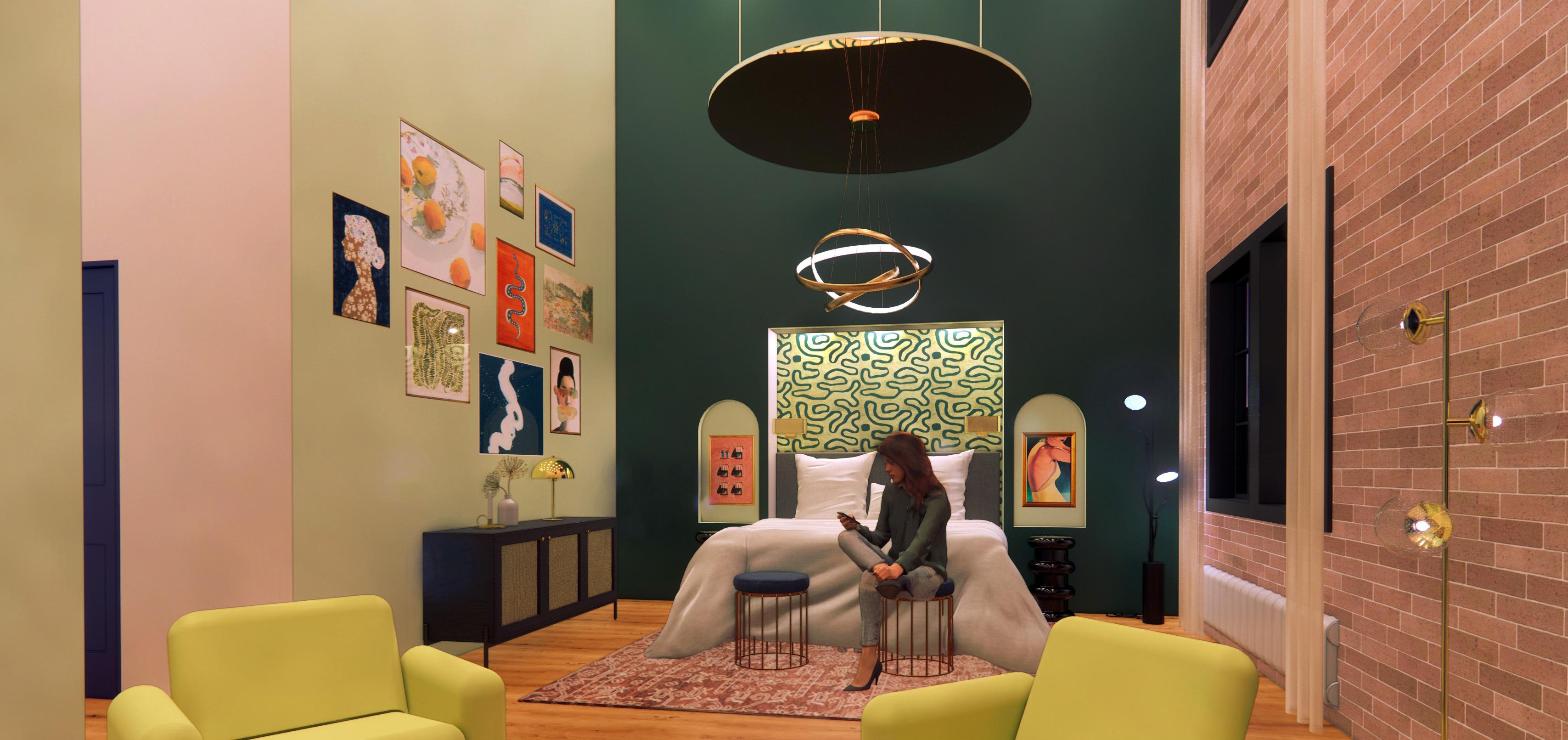 Two young interior designers in their twenties living in Boston, Massachusetts want a loft designed in the eclectic style. They enjoy hosting friends and family and require space to entertain.