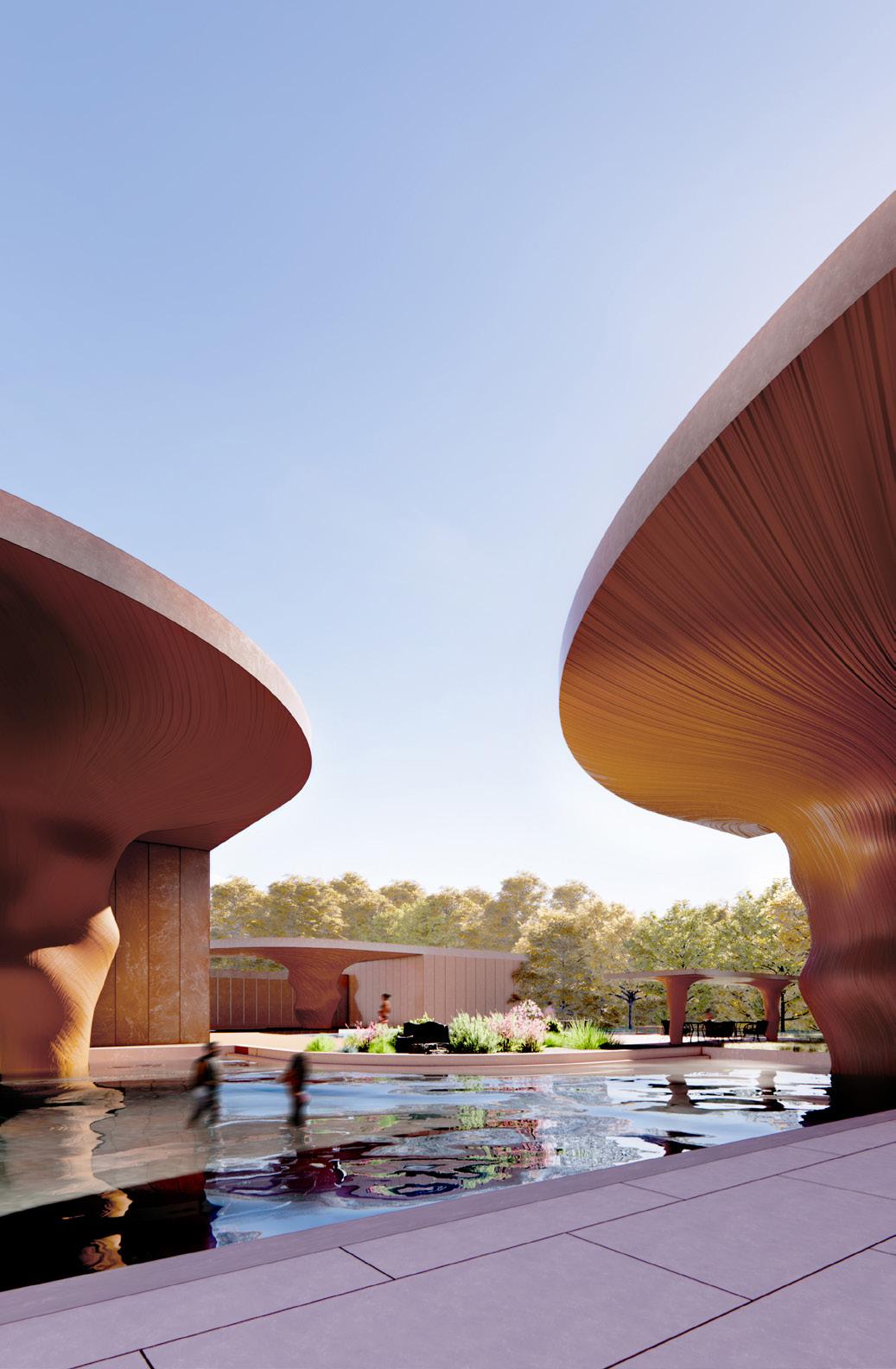 The pattern of the pergola is designed in relation to the neighborhood identity.