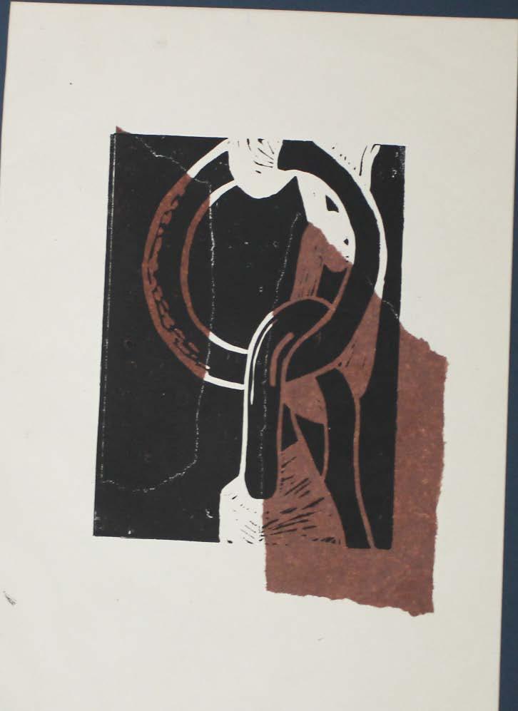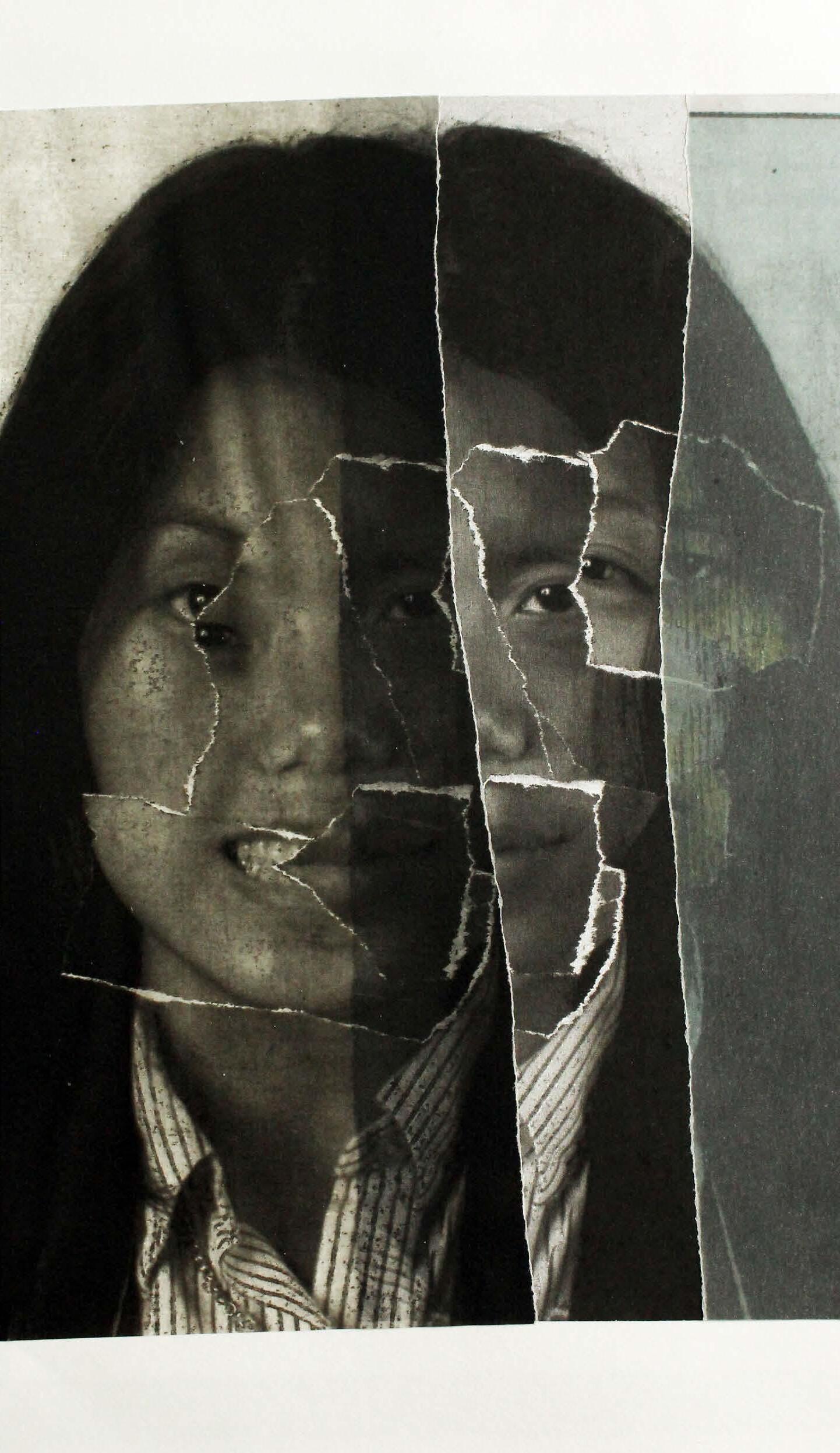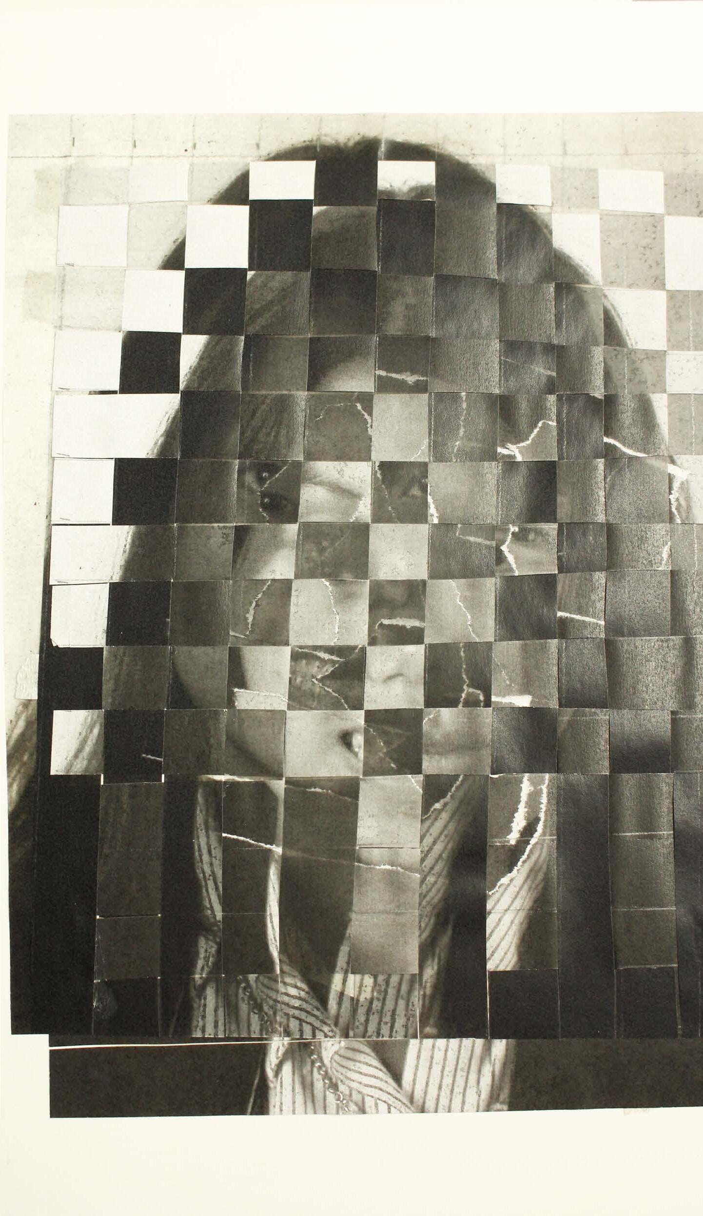 Drypoint etching, photography, ink and bleach, pencil, lino