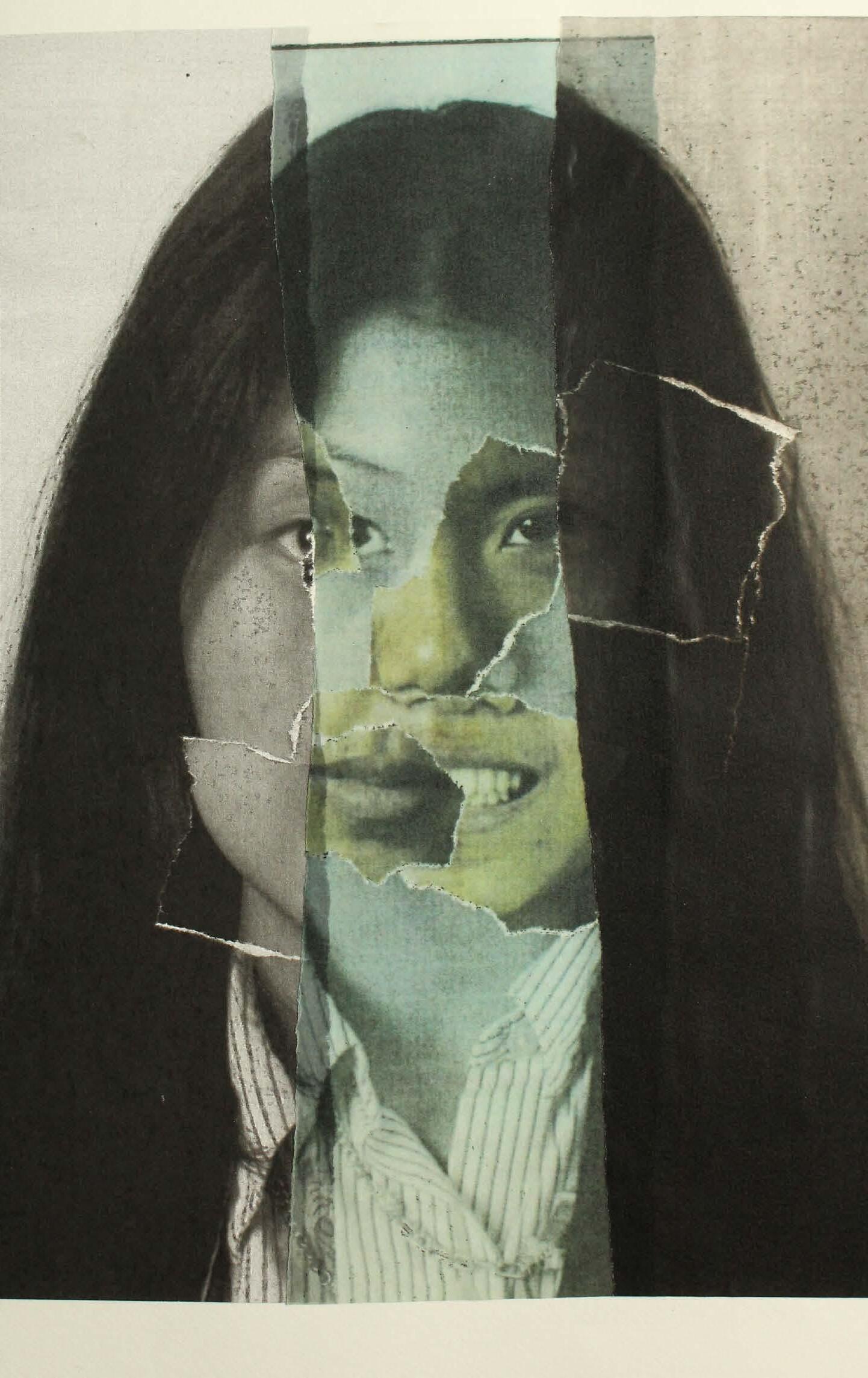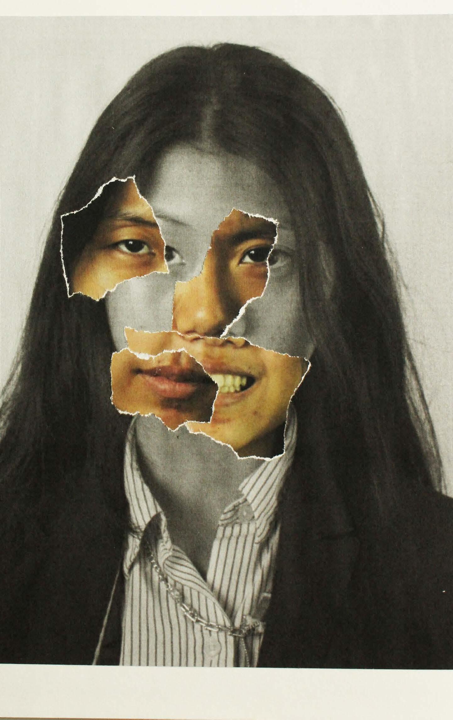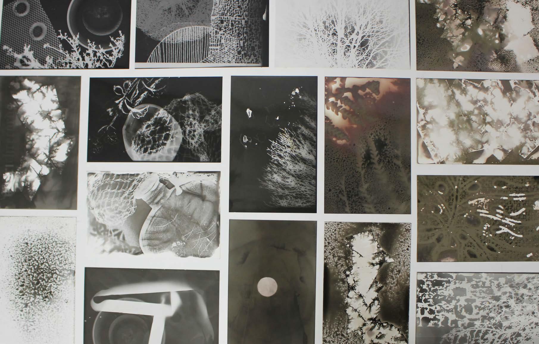 Drypoint etching, photography, ink and bleach, pencil, lino