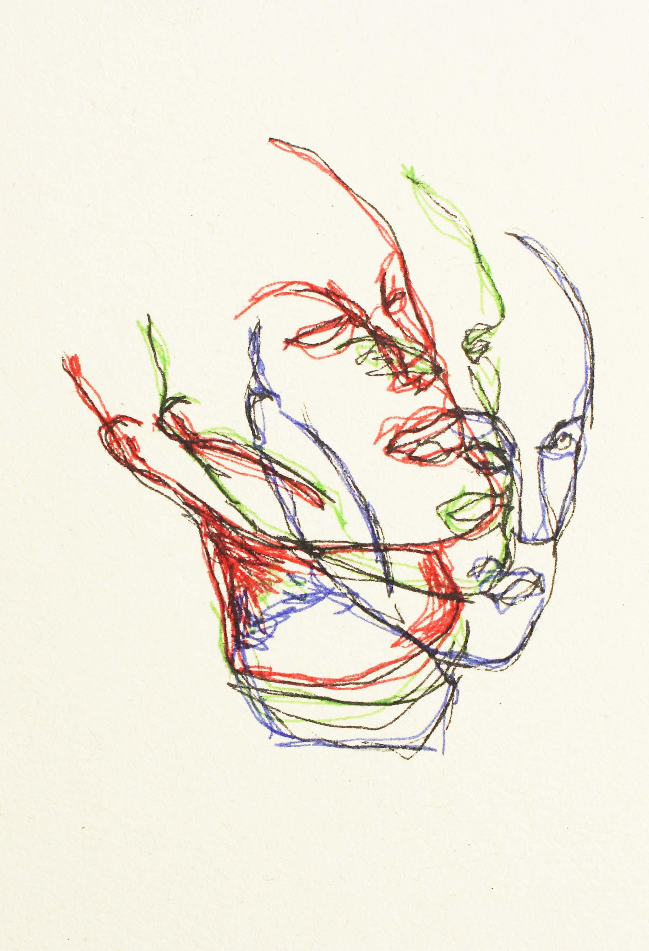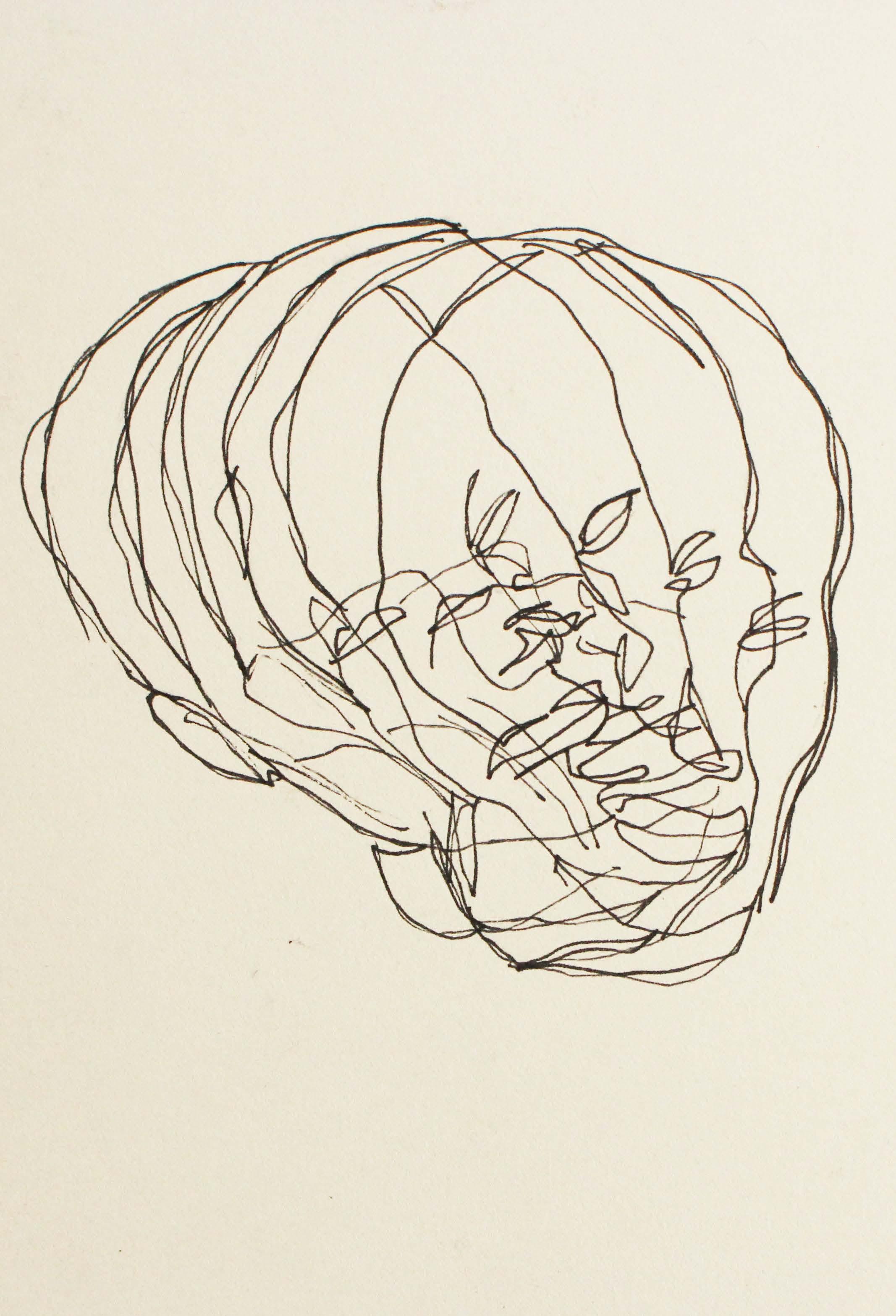 The first artist explored - which inspired the start of the project - was Maggi Hambling. Through her expression of faces, the primary medium she uses is graphite, along with different tonal values to enhance particular features. This further inspired me to start off my project with continuous lines drawings, using a fine liner to create the portraits overleaf. To investigate this further, colour fine liners were incorporated into the drawings, enhancing the state of dysmorphia throughout.