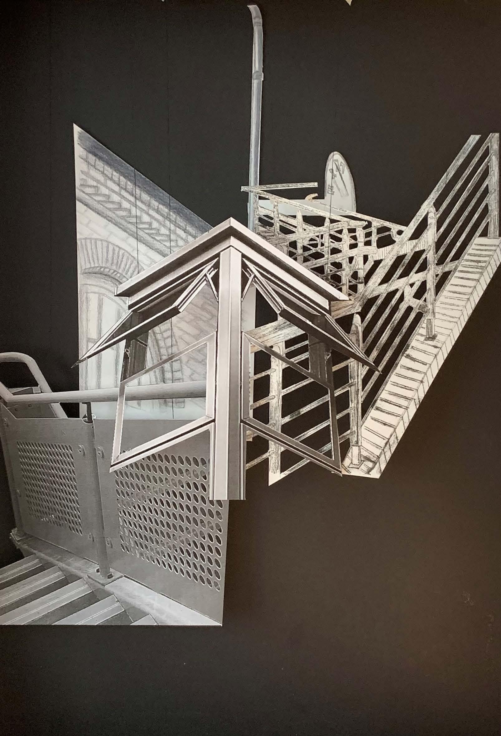 The two photographs of the railings were both turned into drypoint etchings because of the level of detail they showed. Drypoint etchings allow for both delicate and accurate lines to be overlapped, creating the final result of a hyper-realistic etching.