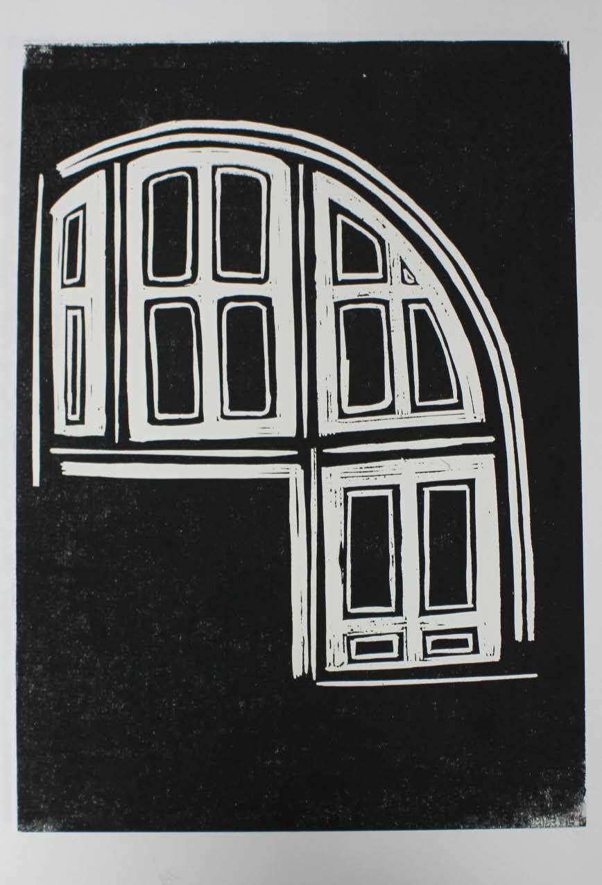 The first medium explored was lino. The photograph of the window was used to create this, as it was the most effective photograph, due to its simple yet effective shape. Using lino meant that I could capture the different tones of the window. Sticking to two tones meant that the final result was very effective and engaging. By not printing the full window and leaving a section of it incomplete, this creates a sense of interest for the on-looker as unanswered questions form.