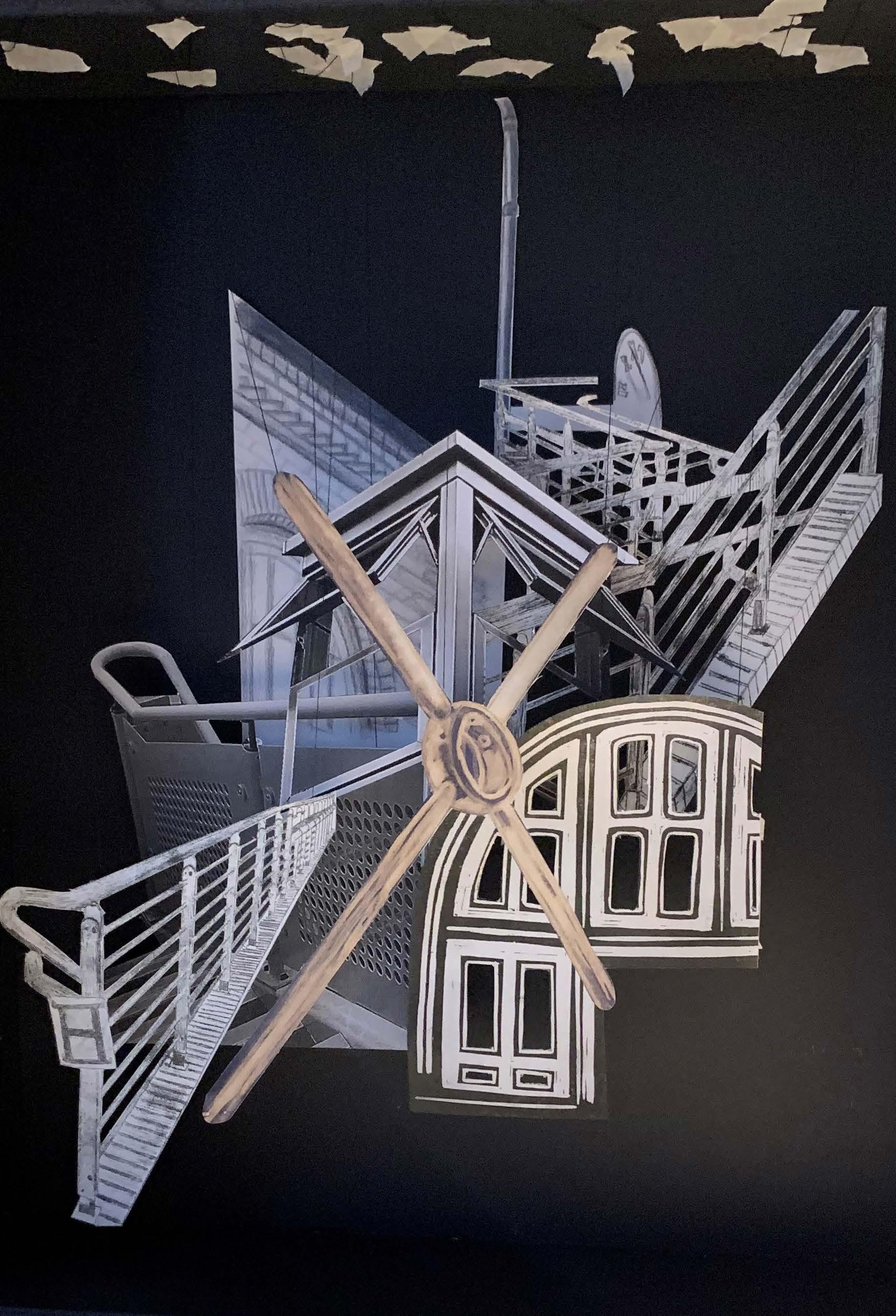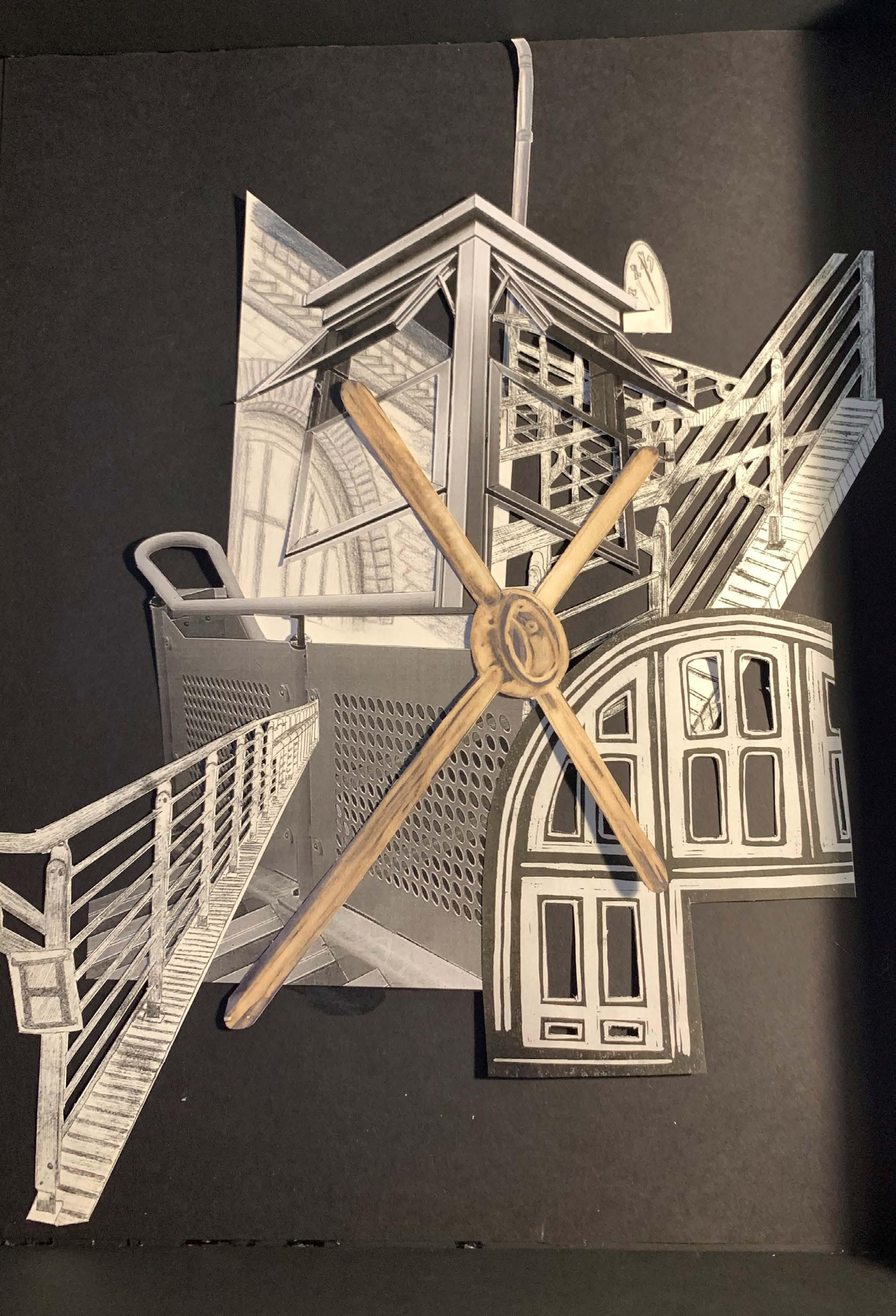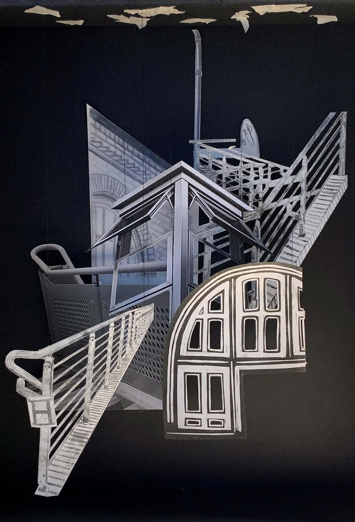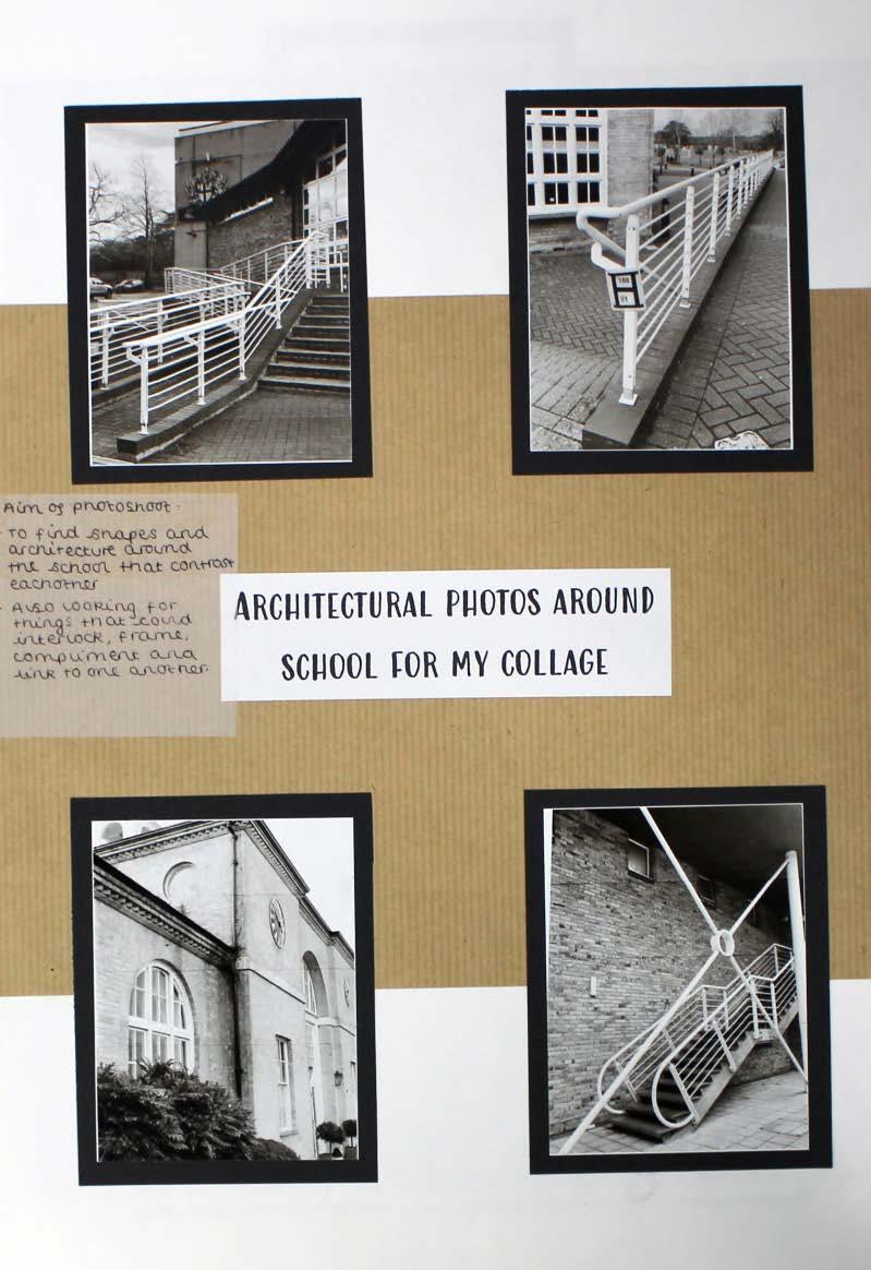 Intrigued by architectural form, this project began with a photoshoot of architectural features, which I then cropped and turned black and white. Having done this, the idea to turn each photo into a different medium of artwork caught my attention.