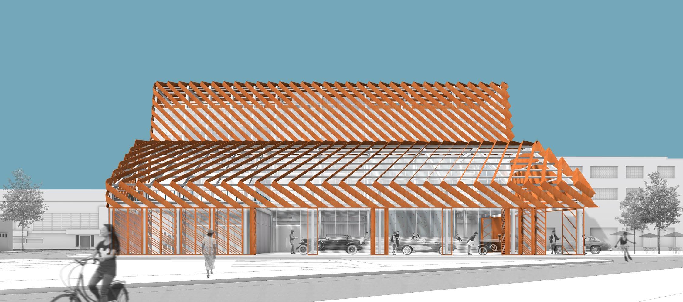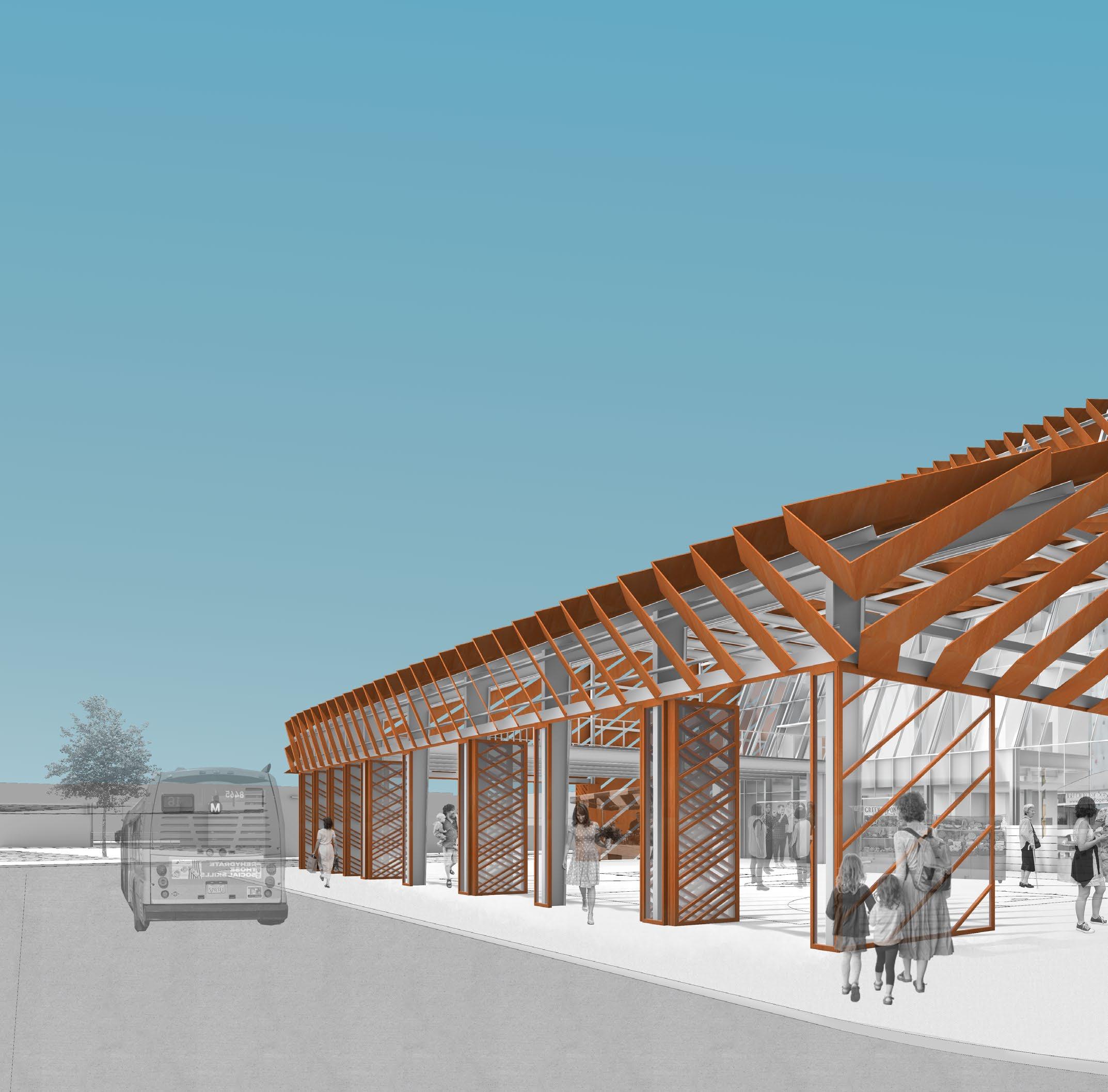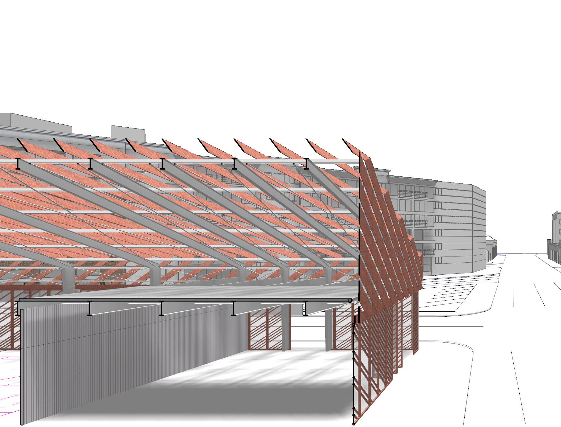 the more heavily trafficked road is, the building appears more opaque. This promotes the leading concept of flexible community engagement by creating a more welcoming, receptive facade towards the public plaza.