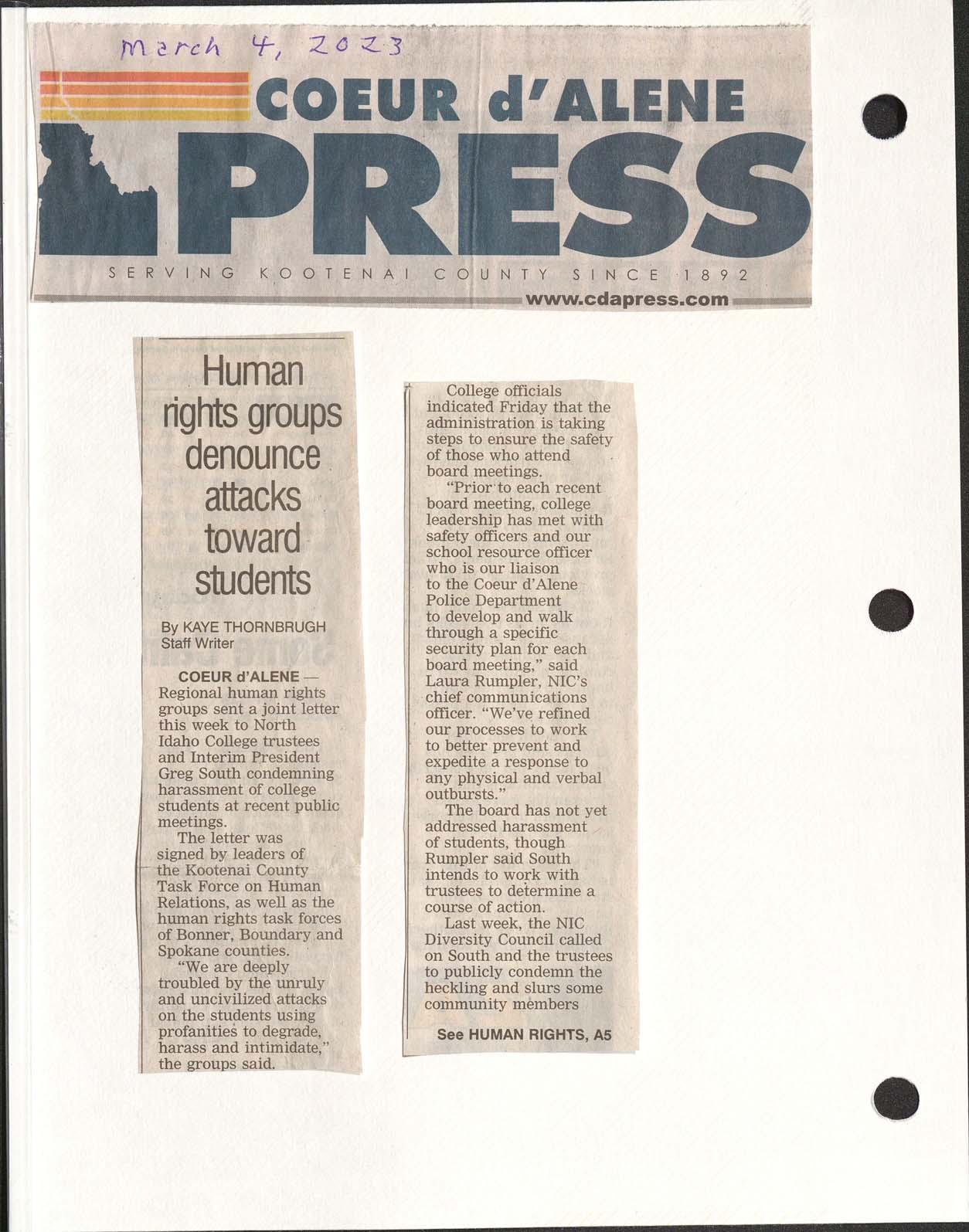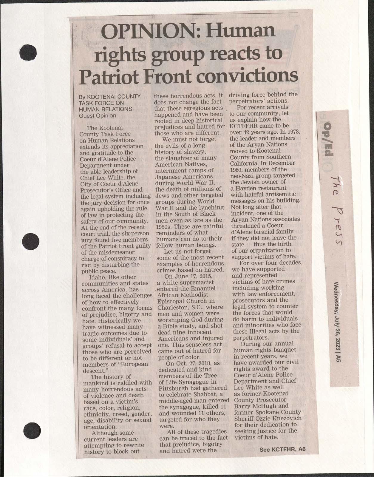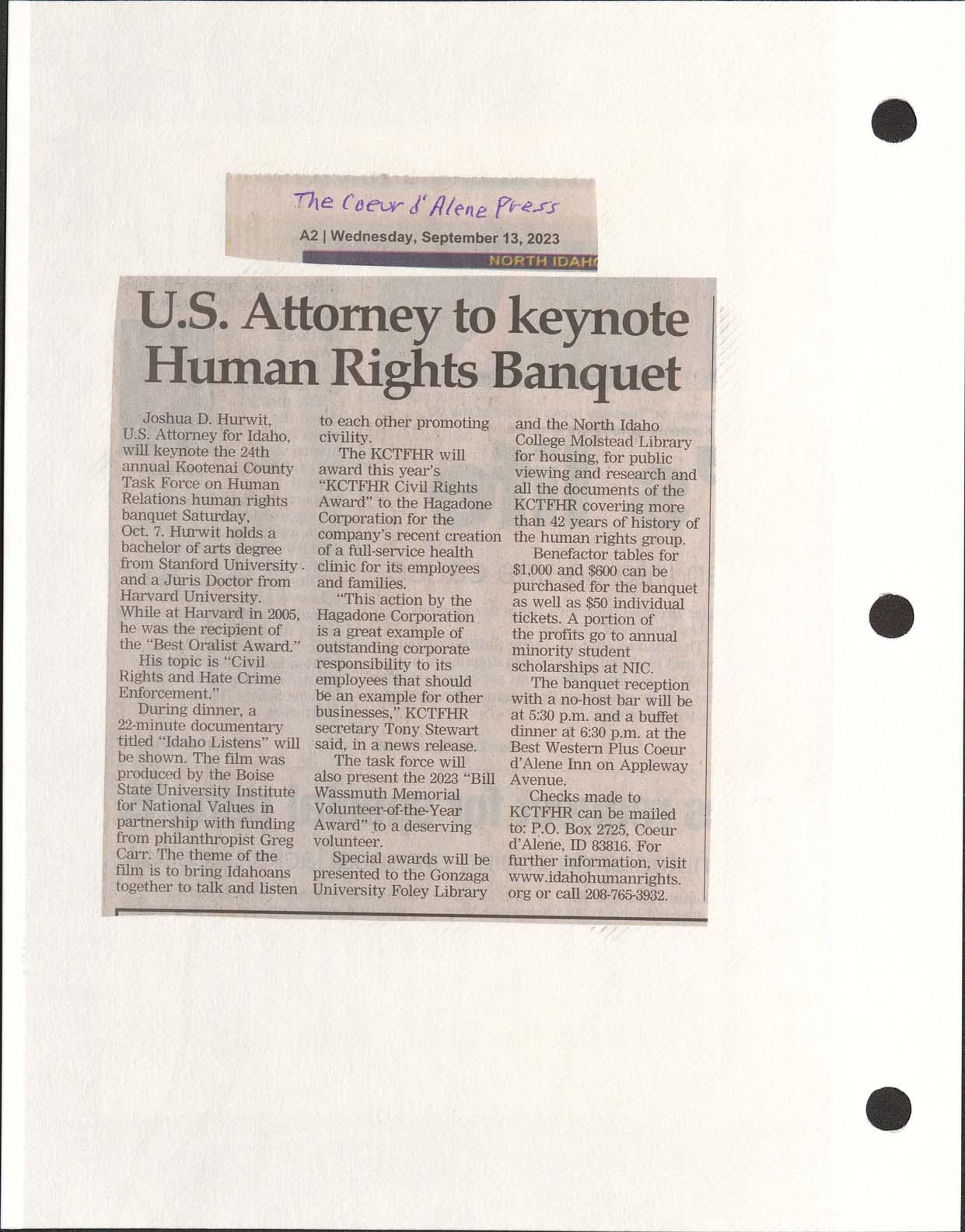 Kootenai County Task Force on Human Relations scrapbook 2023