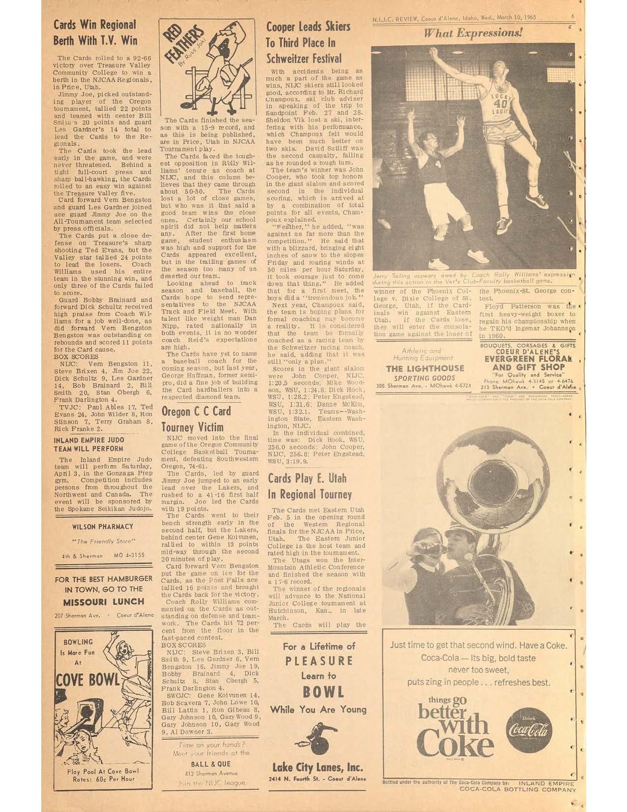 For a lifetime of PLEASURE Learn to BOWL While You Are Young Lake City Lanes, Inc. 2414 N. Fourtll St • Co•ur d'AI••• N.1.J.C. REVIEW, Coeur d'Alono, ldoho, 'N•d •• March 10, 1965 What Expressio ns! T