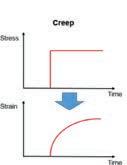 • The constant application of a steady stress for a long time can cause materials to “flow”, changing their apparent stiffness and ultimately, possibly, causing them to fail – this is the creep phenomenon.
