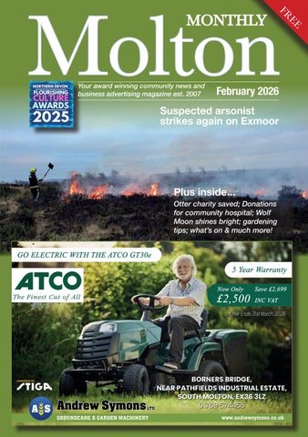 Please contact organisers to check events are still running, with Covid-19 restrictions and guidelines subject to change - be prepared for possible amendments or cancellations. 1st - 10am Flea Market at South Molton Pannier Market 1st - 4pm Coldhabour Mill, Uffculme presents ‘The Tuck Inn’, an open air event of live music, food making and sharing, and workshops, with a professional theatre production that reimagines Robin Hood at its heart. Tickets/information: coldharbourmill.org.uk/events 13th - 7.30pm Chulmleigh Rural Cinema presents ‘23 Walks’ 12A at The Pavilion. Covid guidelines apply and advance booking is required: 01837 88307 or merryman@waitrose.com Tickets: £5 (members £4.50), drinks £2, ice creams £1.50 (doors open 6.45pm) 15th - 10am Salvage Fair at South Molton Pannier Market 17th - 3pm Chulmleigh Society tour of Tiverton Hospital Wildlife Garden with Dr Gavin Haigh 21st - 11am Skate Jam at South Molton skate park - organised by Skate Molton 22nd - 10.30am North Molton Country Fair all day at the Sports Club (advert page 14) 30th - 10.30am Summer Steam Up! Steam day at Coldharbour Mill, Uffculme. Tickets/ information: coldharbourmill.org.uk/events 1st until Sept 11th - 10am daily Charles Village History Exhibition, St John the Baptist Church Text only what’s on listings in Molton Monthly are free - please email to info@moltonmonthly.co.uk deadline 12th each month. Display adverts may carry a charge.