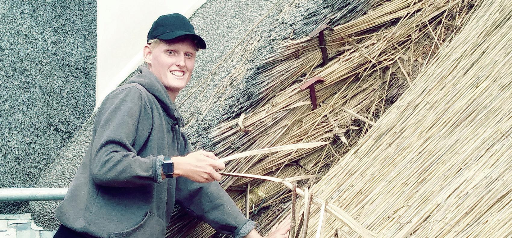 A chance meeting with master thatcher Shaun Clark, came to young Harry Tickner as he worked at a local garden centre in the summer break from university, then aged just 20. It changed his life and career path. “I’ll give you six months to see if it is for you!” said Shaun.