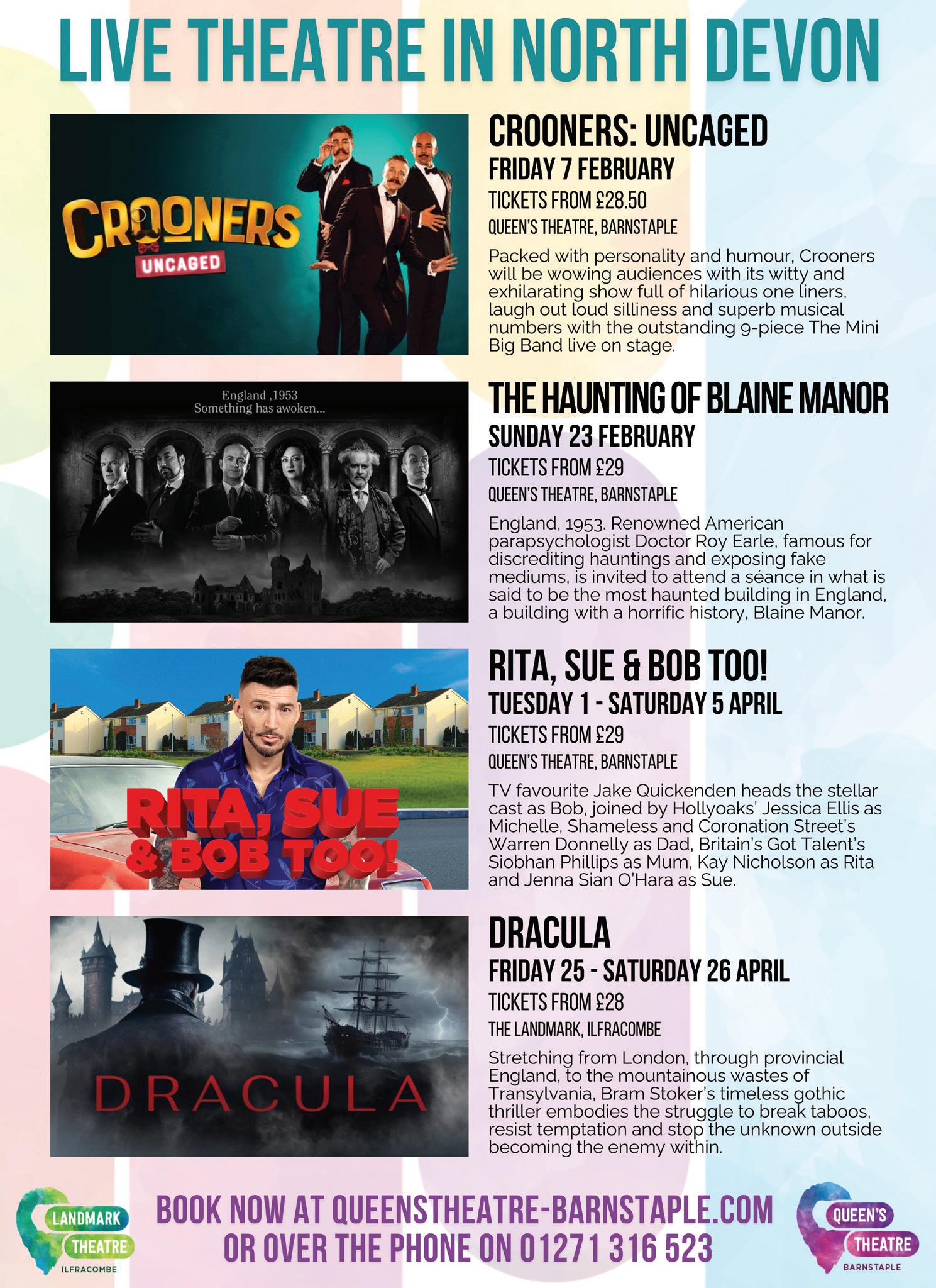 14th - 10am Rose’s North Devon Hospice Coffee Morning at SMART Swim Centre, South Molton 10th - 7pm Film Night screening ‘Touch’ at Rose Ash Village Hall: rose-ash.com/tag/film-nights/ 14th - 7.30pm (doors open 6.45pm) Chulmleigh Rural Cinema presents ‘The Critic’ (15) - tickets £5.50 or £4.50 members, refreshments available, screening at Chulmleigh Pavilion