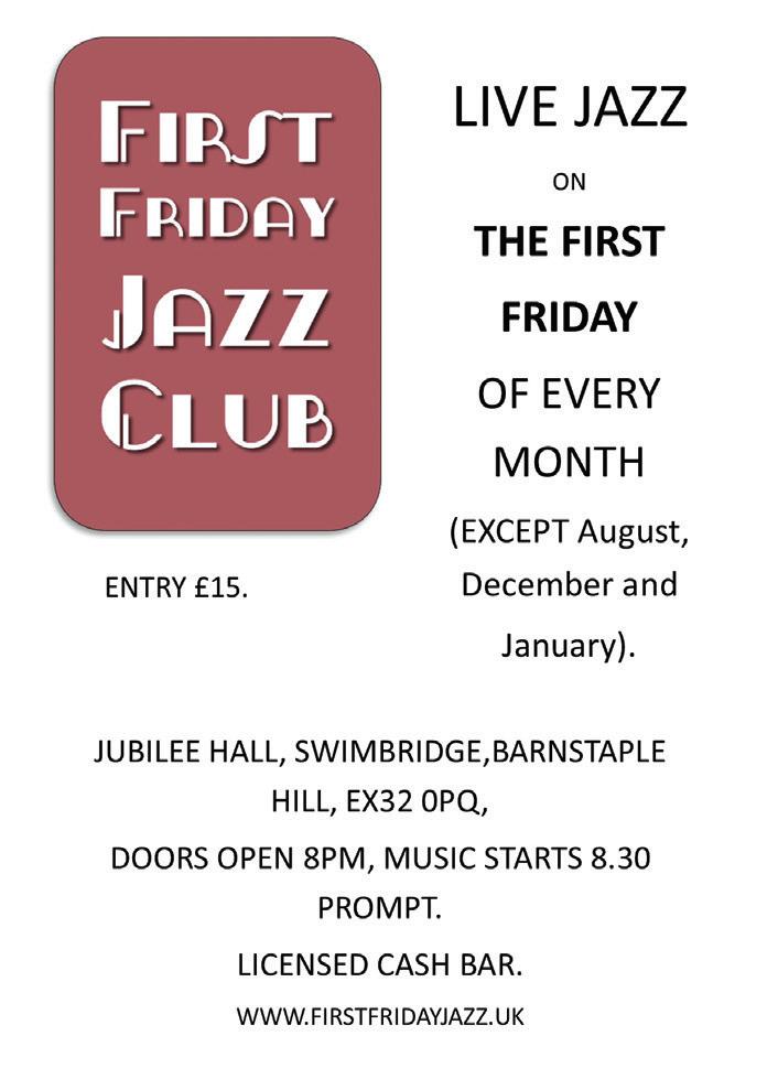 7th - 8pm First Friday Jazz presents the Hot House Combo at Swimbridge Jubilee Hall (advert page 14) 10th - 7pm for 7.30pm Fun Quiz with Chulmleigh & District Garden Society at Chawleigh Jubilee Hall; Max 6 per team, £3pp inc bread & cheese, wine available. Entries by Feb 5th: dianaM@farmline.com