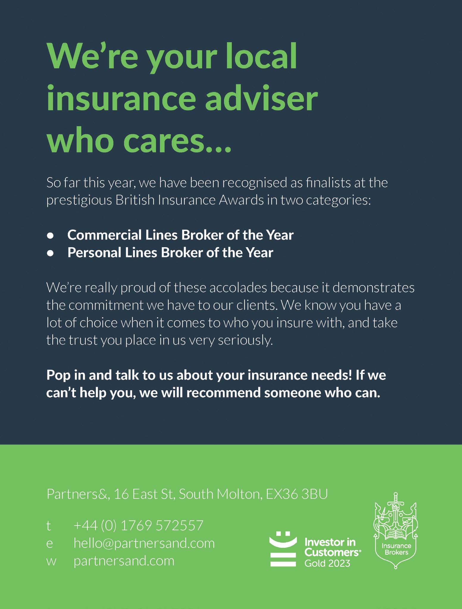 Molton Monthly Magazine is printed on recyclable, carbon neutral paper using solar energy as part of our ongoing commitment to a sustainable future. More than 5,250 copies are delivered free, door-to-door, by our dedicated local team to East and West Buckland, North Molton, South Molton, Heasley Mill, Filleigh, Swimbridge, Heddon, Clapworthy Mill, Bishops Nympton, Bish Mill, Chulmleigh, Chittlehampton, Kings Nympton, George and Queens Nympton. We also have pick-up points around South Molton, Pathfields Business Park, Filleigh, Atherington, Chawleigh, Umberleigh, Rose Ash and Chittlehamholt, plus it is available at select North Devon and Exmoor pubs.