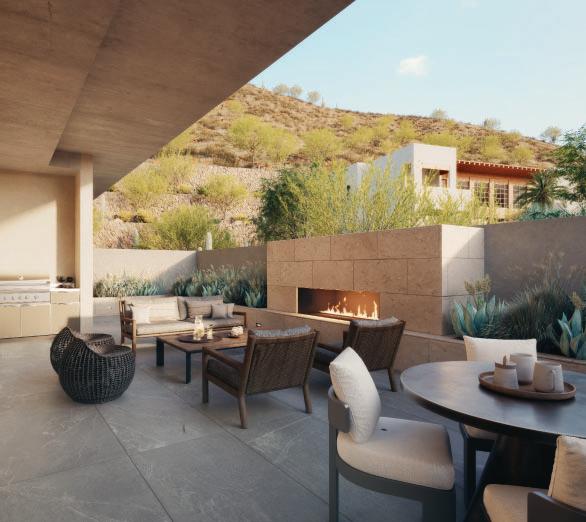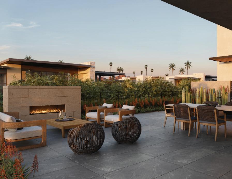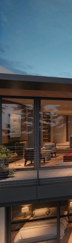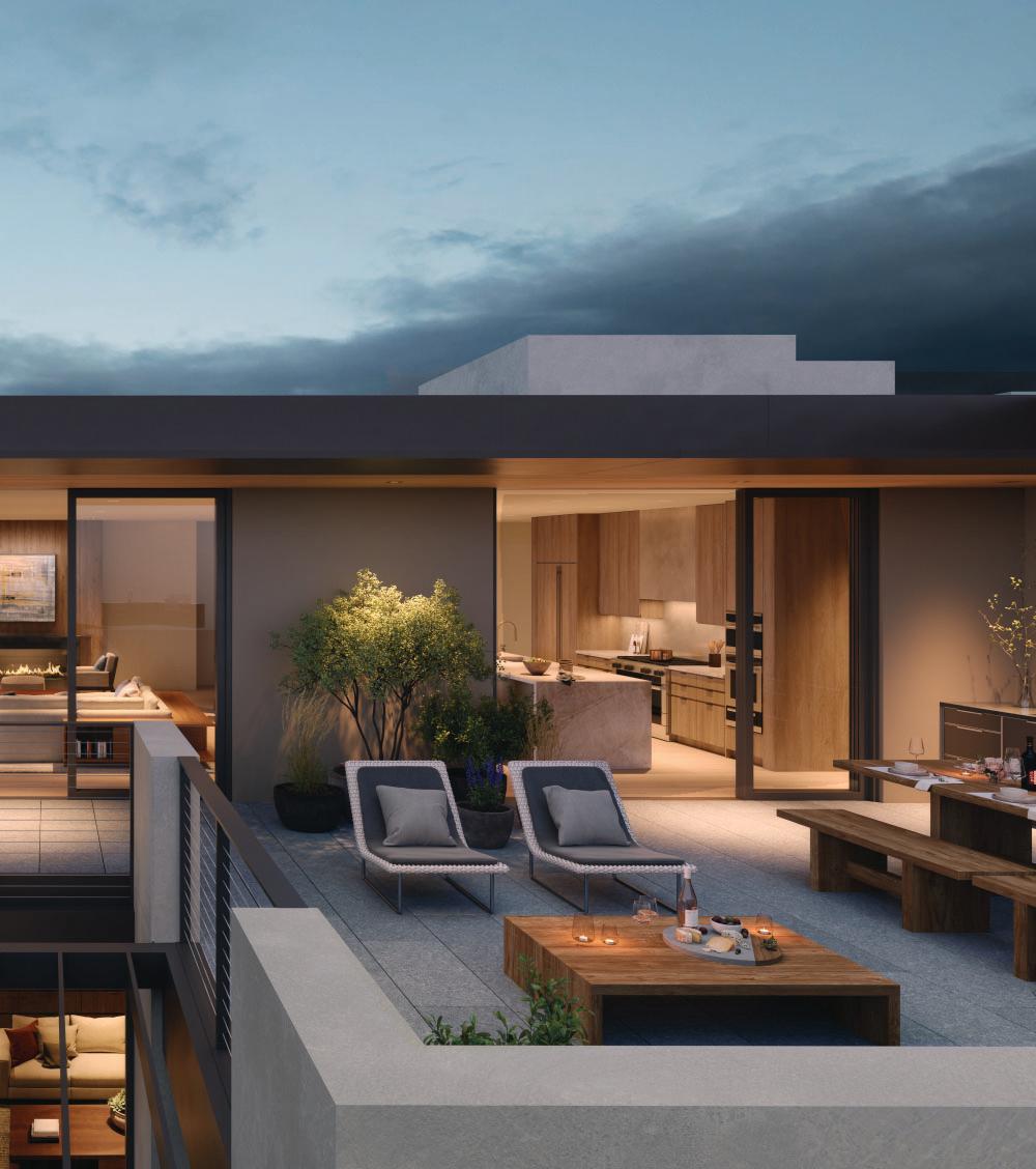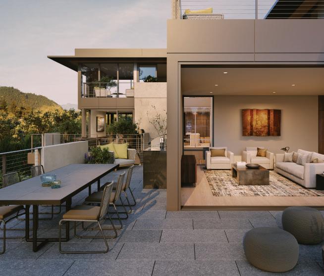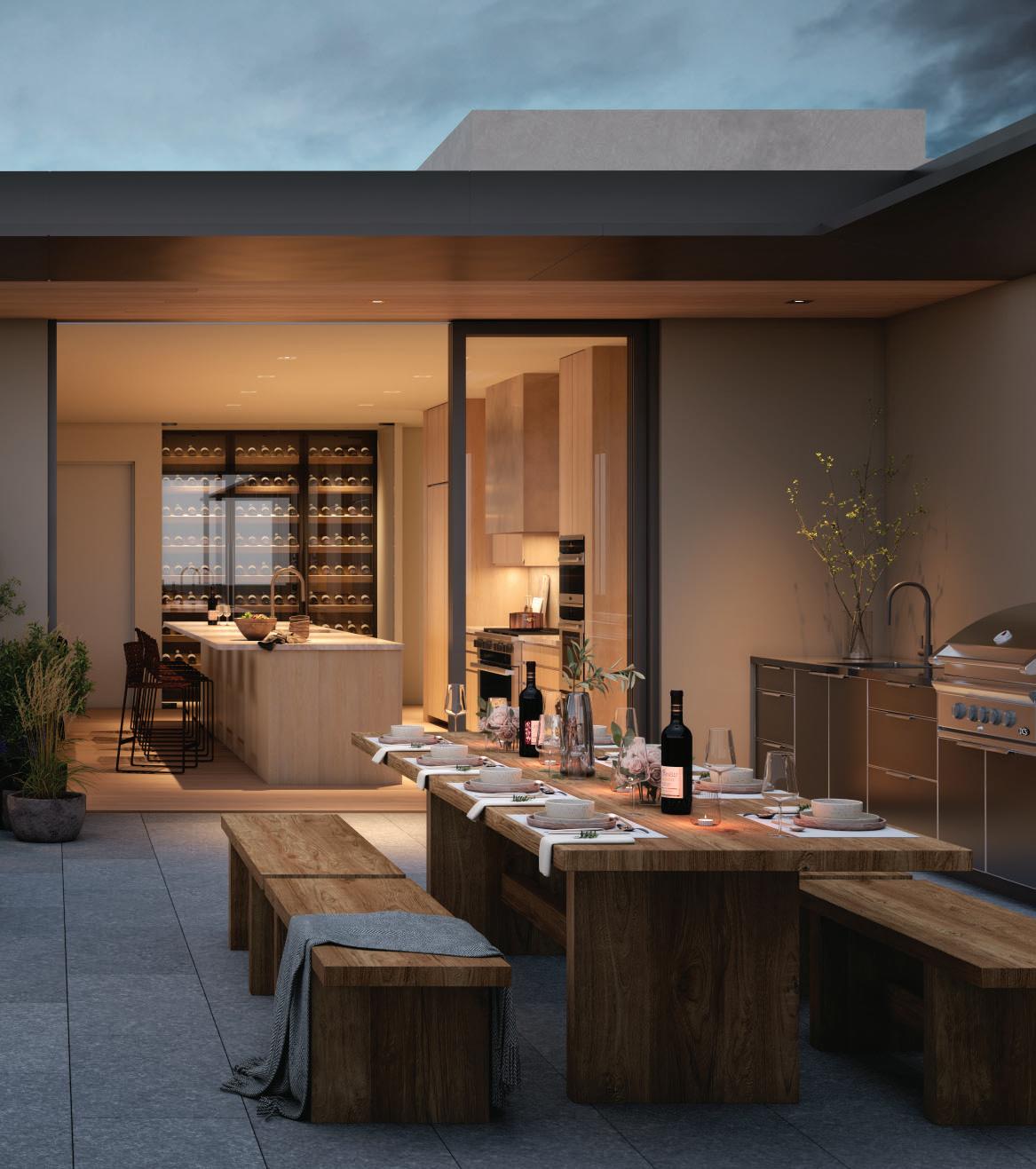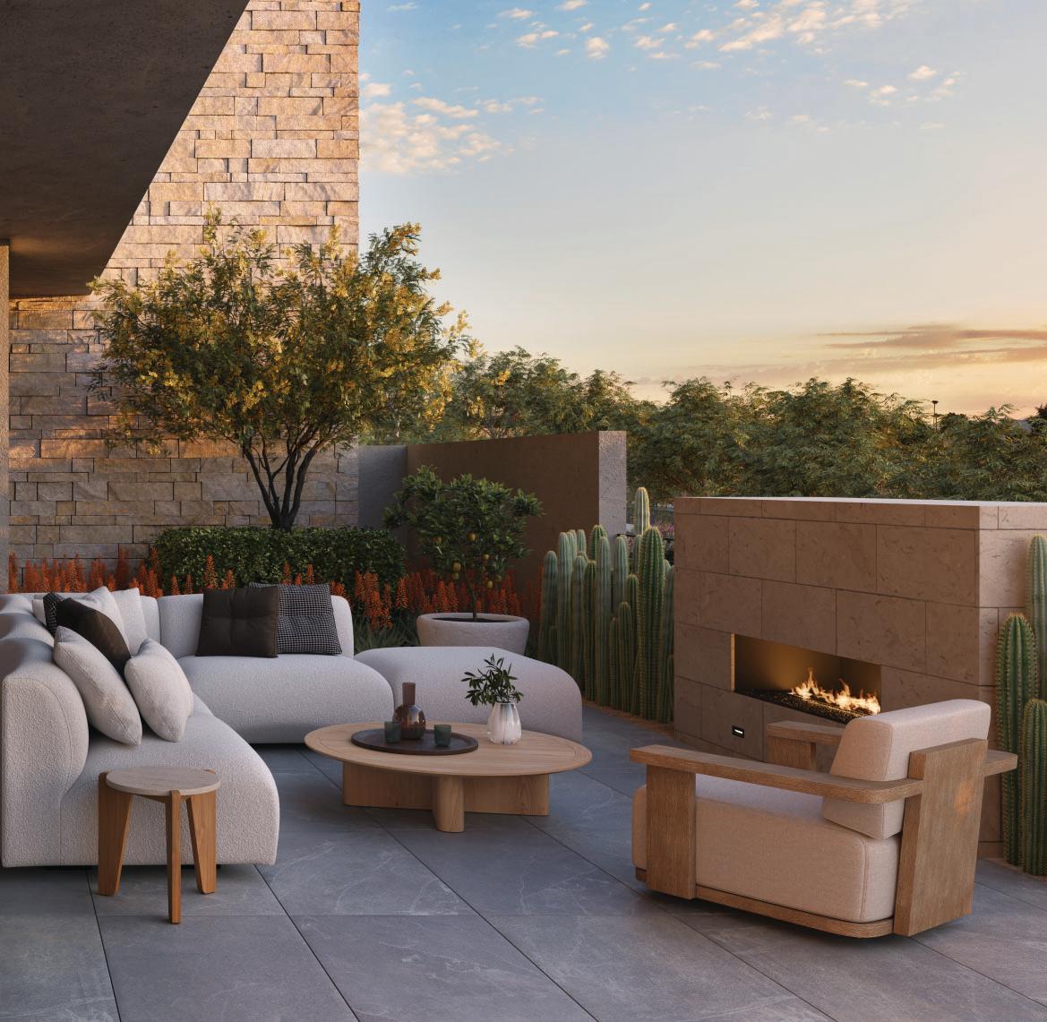 Outdoor fireplaces, private patio gardens and large sliding doors connect the indoor and outdoor spaces and encourage a seamless flow for residents. We create layers of furniture, accessories and light to enliven the spaces, providing good spacial sequencing and suggestion of how the spaces should live and feel.