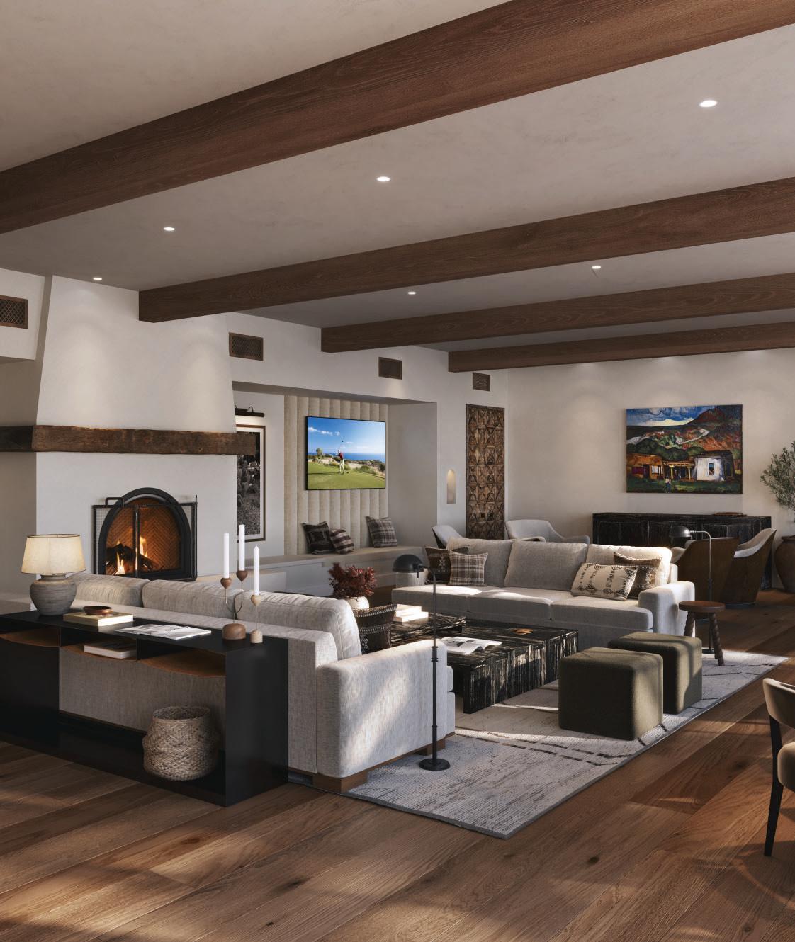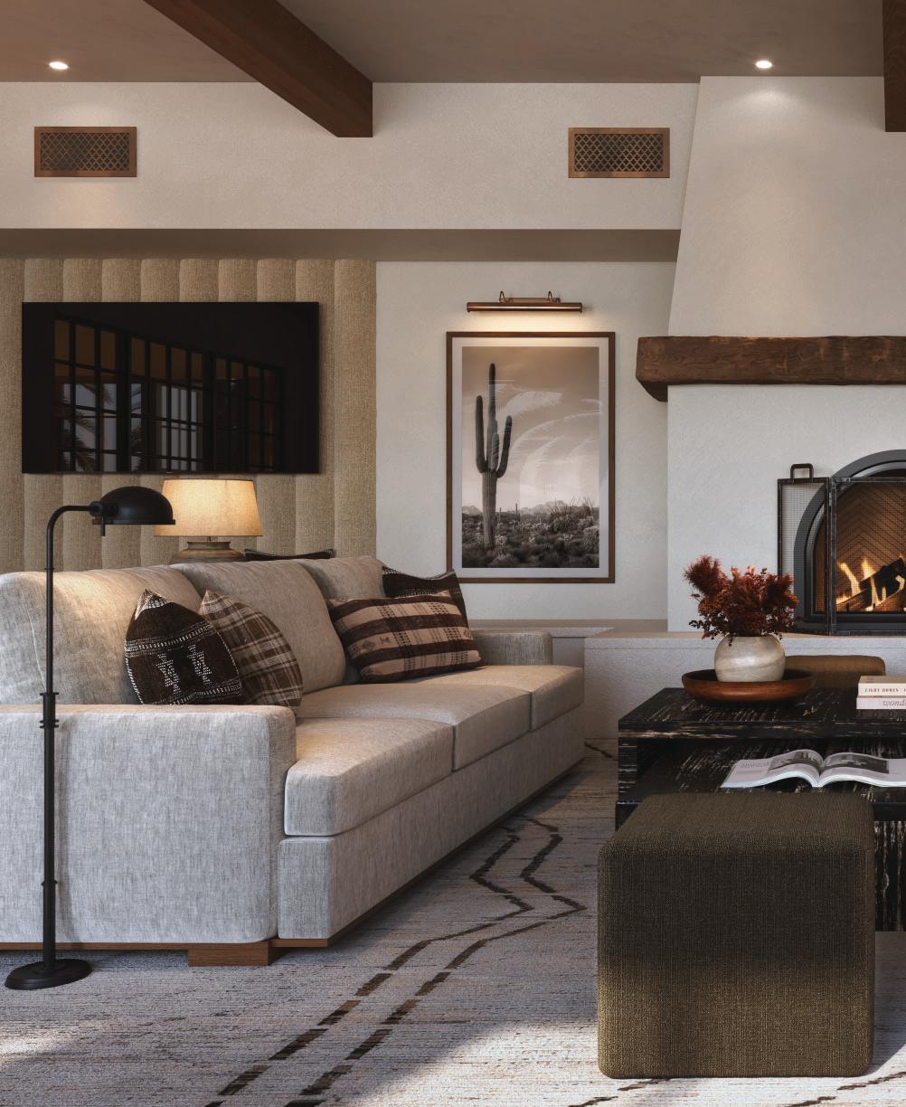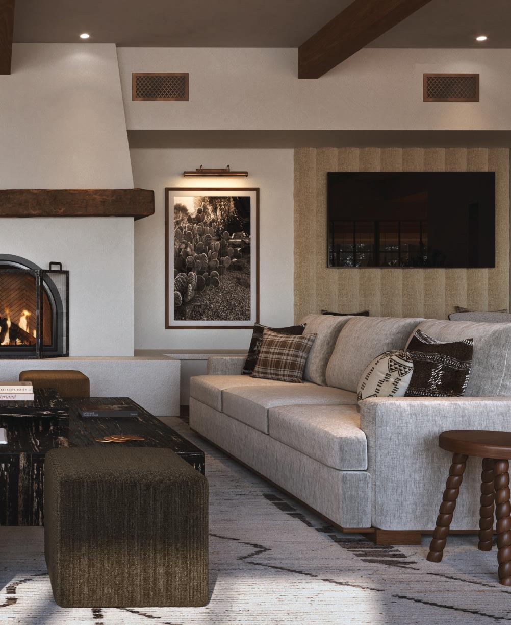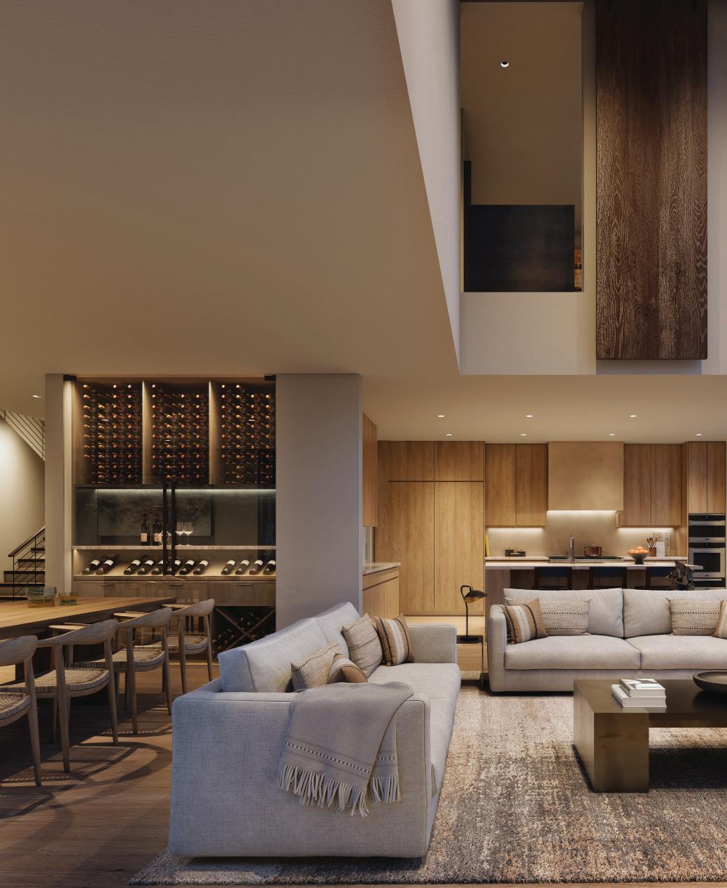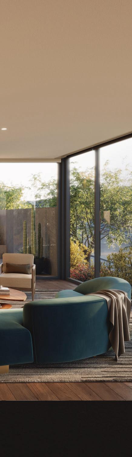 Outdoor fireplaces, private patio gardens and large sliding doors connect the indoor and outdoor spaces and encourage a seamless flow for residents. We create layers of furniture, accessories and light to enliven the spaces, providing good spacial sequencing and suggestion of how the spaces should live and feel.