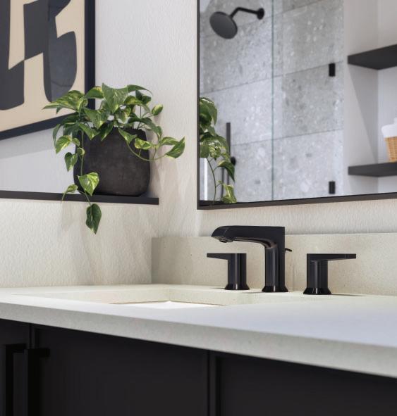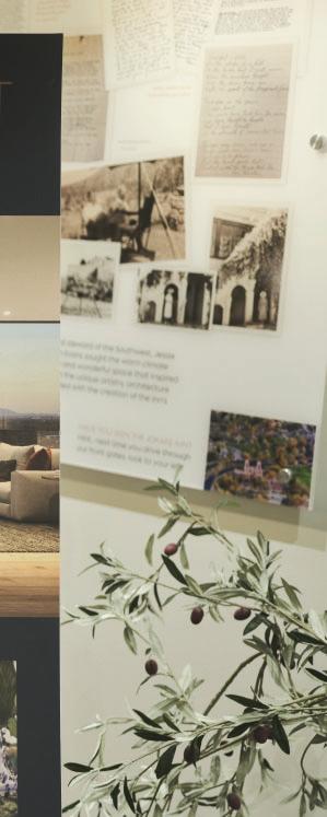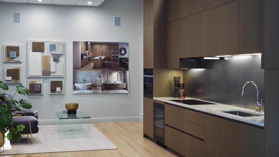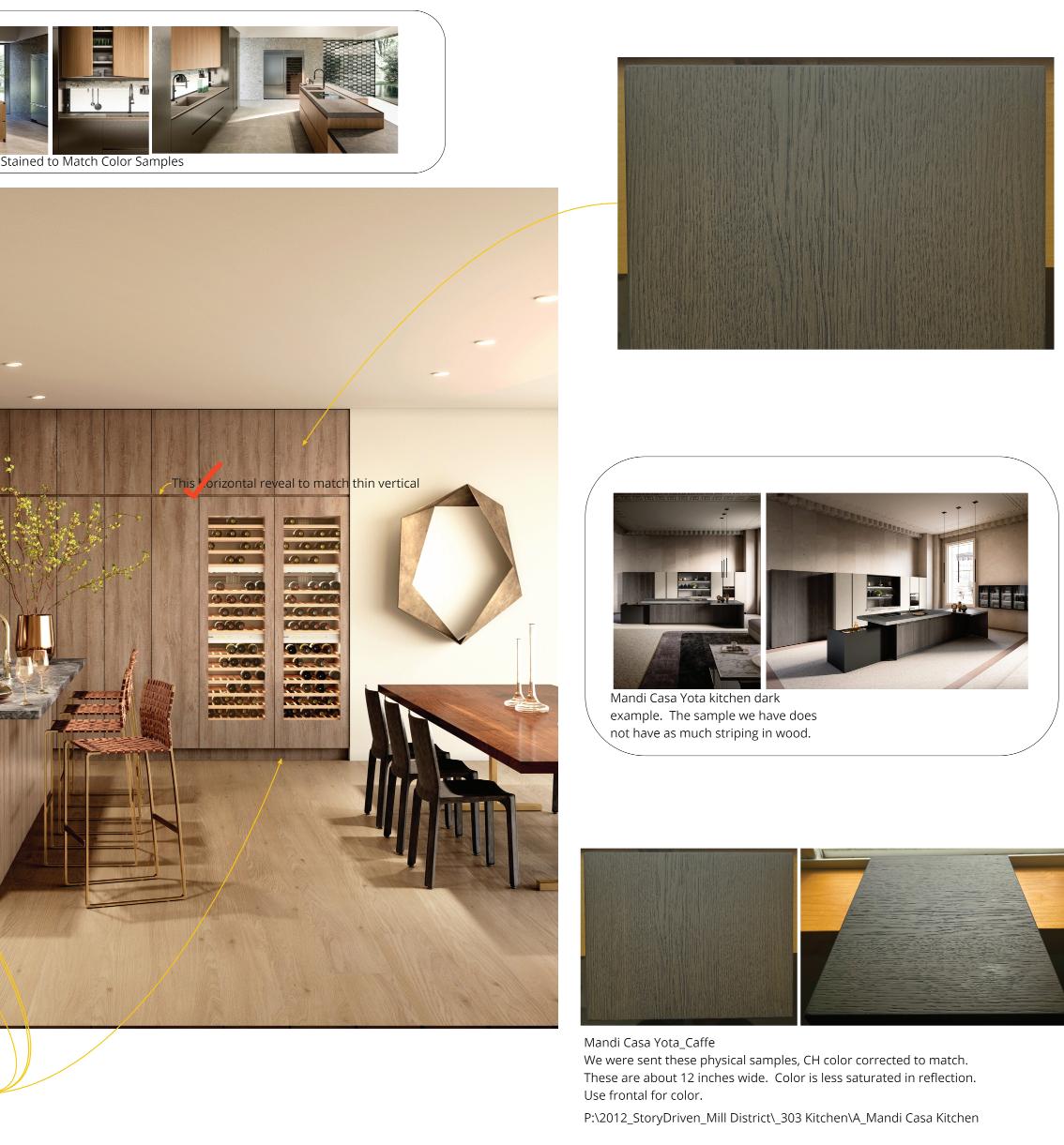 Upper Left: Mill District sales office and showroom complete with a physical mock-up of a Mandicasa kitchen and material board portraying the material options.