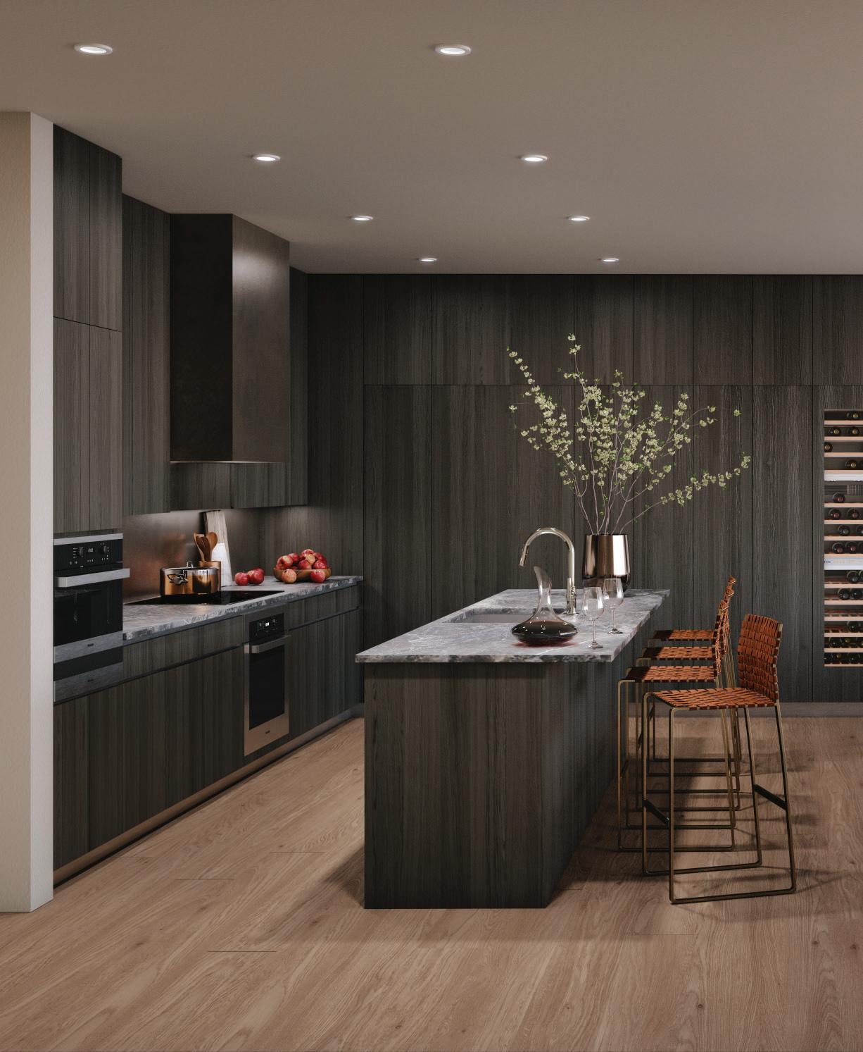 The Ascent development team enlisted Bulthaup as the exclusive designer and supplier of the luxurious kitchens found in all of the residences. Tasked with faithfully reproducing the high end designs, the MOLT team worked through numerous iterations with the design team, nailing the configuration, fit and finish of the kitchens. Buyers are encouraged to work directly with Bulthaup to further customize the kitchen to their own specification.